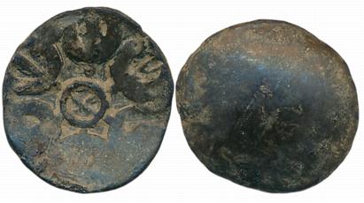 Punch Marked, Attributed to Gandhara Janapada, Silver Shana- 1/8 Shatamana, 1.40g, Uniface, single six armed symbol on obverse (Rajgor # Series 41). About extremely fine.