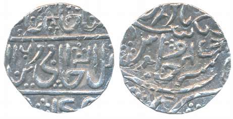 Gwalior, Jankoji Rao, Silver Rupee, 10.80g, Sipri Mint, in the name of Shah Alam II, AH 1106/ RY 9, Leaf on reverse. Cleaned, very fine.