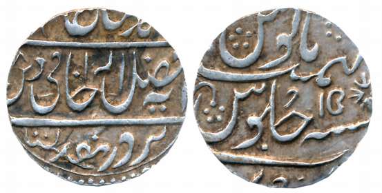 Gwalior, Jankoji Rao, Silver Rupee, 10.80g, Sipri Mint, in the name of Shah Alam II, AH 1106/ RY 9, Leaf on reverse. Cleaned, very fine.