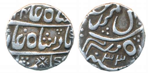 Gwalior, Jankoji Rao, Silver Rupee, 10.88g, Sipri Mint, in the name of Shah Alam II, RY 9, Leaf on reverse. Cleaned, very fine.