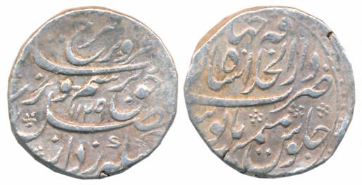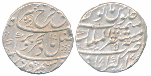 Bombay Presidency, Mumbai, Silver Rupee, 11.51g, in the name of Muhammad Shah, RY 11 (KM# 163). Very fine+.