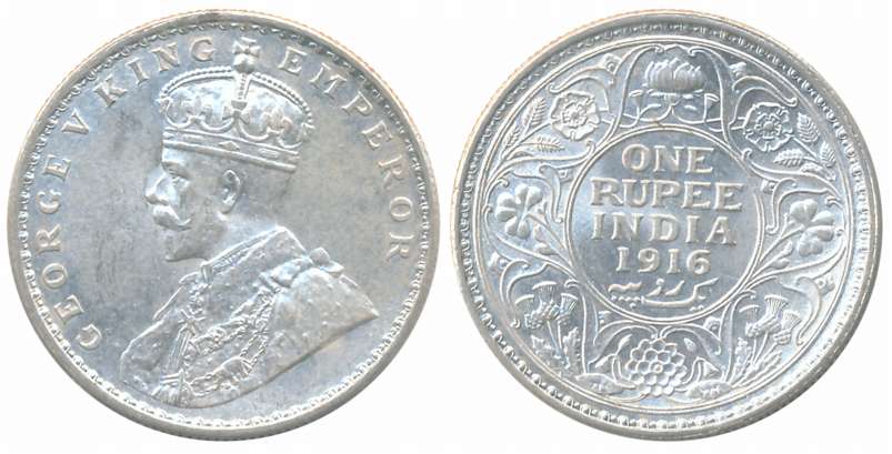 George V, Silver Rupee, 1916, Bombay Mint, Obv: King George V facing to left, Rev: Denomination & Date within circle, wreath surrounds, Very fine. Coin packed in Temper proof slab with life time guarantee of authenticity “CERTIFIED GENUINE COIN”.