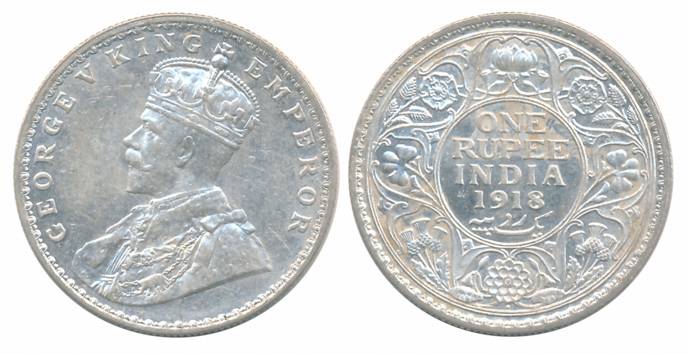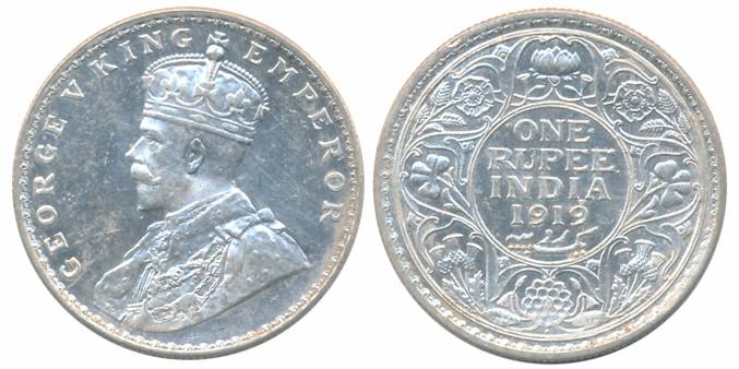 George V, Silver Rupee, 1919, Bombay Mint, Obv: King George V facing to left, Rev: Denomination & Date within circle, wreath surrounds, Very fine. Coin packed in Temper proof slab with life time guarantee of authenticity “CERTIFIED GENUINE COIN”.