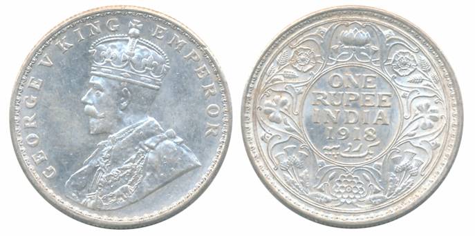 George V, Silver Rupee, 1919, Bombay Mint, Obv: King George V facing to left, Rev: Denomination & Date within circle, wreath surrounds, Very fine. Coin packed in Temper proof slab with life time guarantee of authenticity “CERTIFIED GENUINE COIN”.