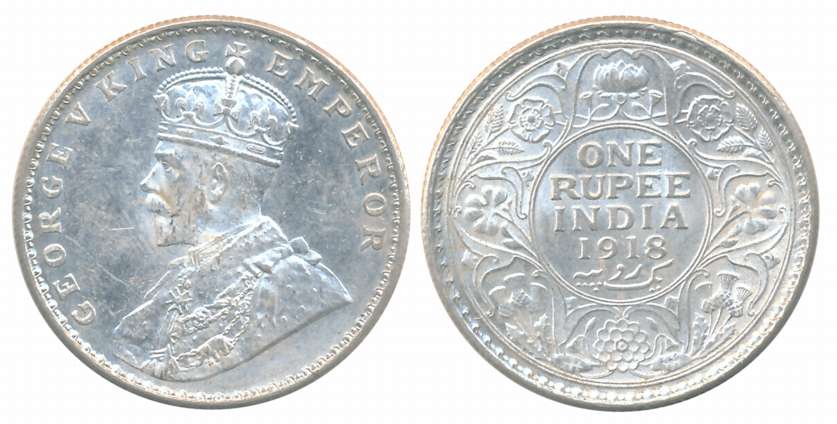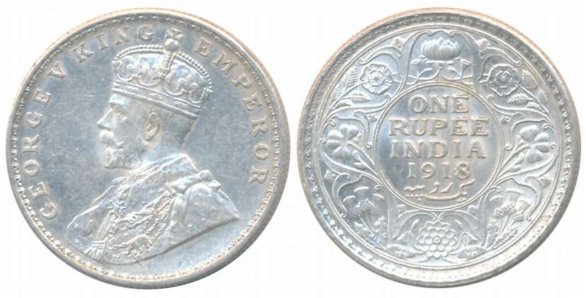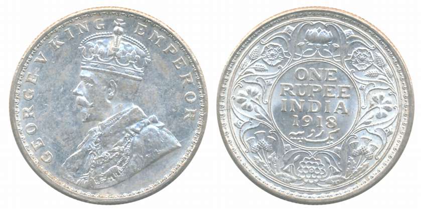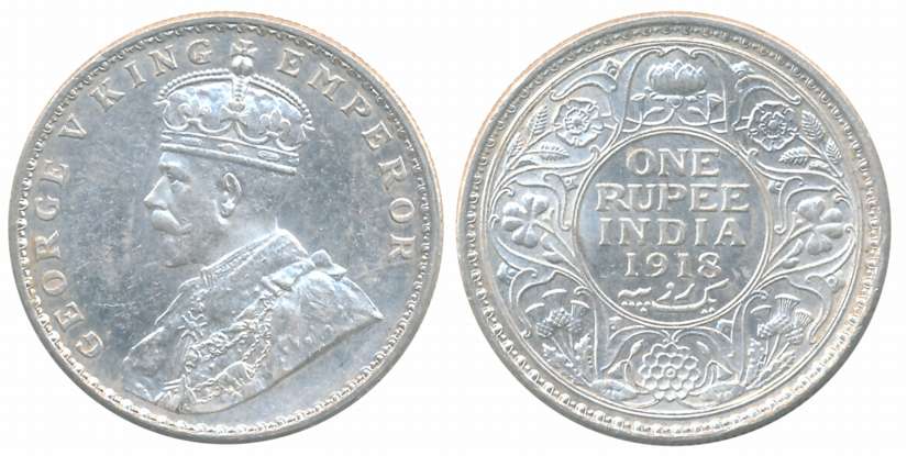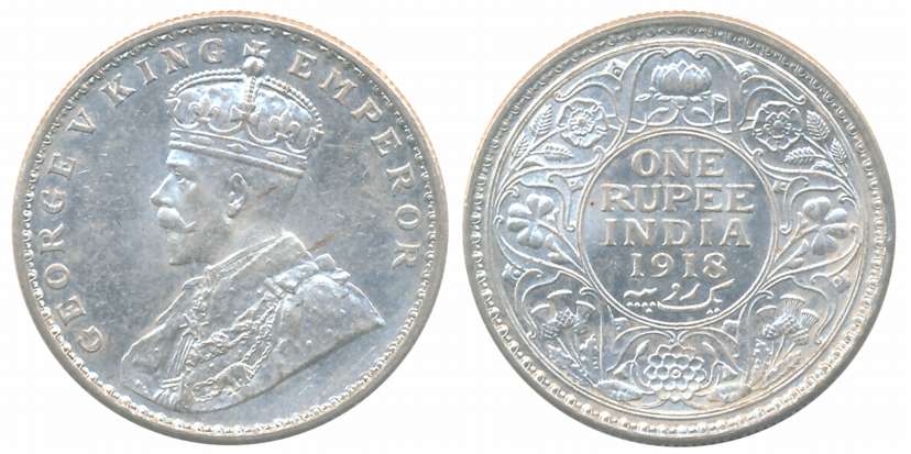 George V, Silver Rupee, 1918, Bombay Mint, Obv: King George V facing to left, Rev: Denomination & Date within circle, wreath surrounds, Very fine. Coin packed in Temper proof slab with life time guarantee of authenticity “CERTIFIED GENUINE COIN”.