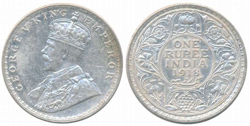 George V, Silver Rupee, 1918, Bombay Mint, Obv: King George V facing to left, Rev: Denomination & Date within circle, wreath surrounds, Very fine. Coin packed in Temper proof slab with life time guarantee of authenticity “CERTIFIED GENUINE COIN”.