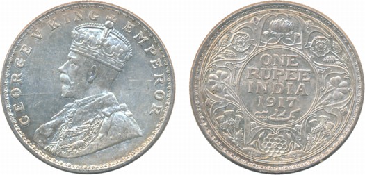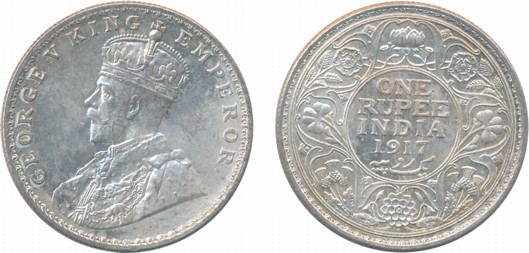 George V, Silver Rupee, 1917, Bombay Mint, Obv: King George V facing to left, Rev: Denomination & Date within circle, wreath surrounds, Very fine. Coin packed in Temper proof slab with life time guarantee of authenticity “CERTIFIED GENUINE COIN”.