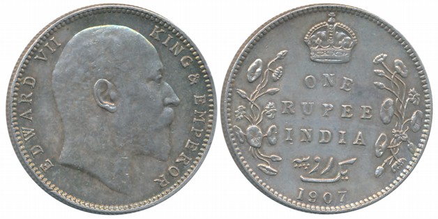 Edward VII, Silver Rupee,1907, Obv: Bust of King Emperor facing right, Legend “EDWARD II, KING EMPEROR” above, Rev: Legend “ONE RUPEE INDIA” date below in wreath crown above, Persian Legend Yek Rupaya. Very fine. You are saving Rs. 100/- on this purchase.