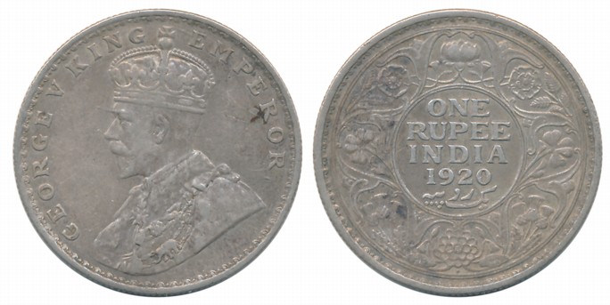 George V, Silver Rupee, 1919, Obv: King George V facing to left, Rev: Denomination & Date within circle, wreath surrounds, Very fine. Certified, Authenticated and packed in Temper Proof Coin Card. You are saving Rs. 100/- on this purchase.