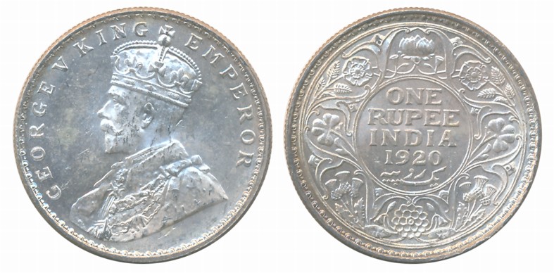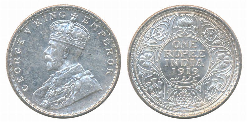 George V, Silver Rupee, 1919, Obv: King George V facing to left, Rev: Denomination & Date within circle, wreath surrounds, Very fine. Certified, Authenticated and packed in Temper Proof Coin Card. You are saving Rs. 100/- on this purchase.