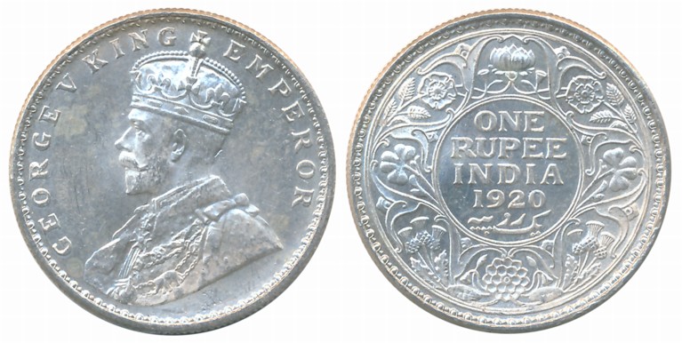 George V, Silver Rupee, 1919, Obv: King George V facing to left, Rev: Denomination & Date within circle, wreath surrounds, Very fine. Certified, Authenticated and packed in Temper Proof Coin Card. You are saving Rs. 100/- on this purchase.