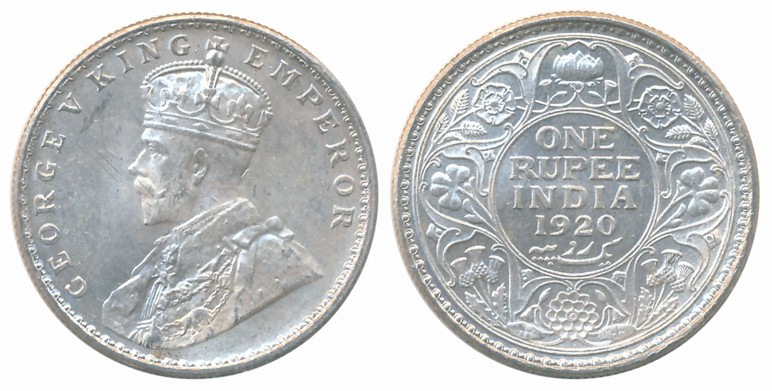 George V, Silver Rupee, 1919, Obv: King George V facing to left, Rev: Denomination & Date within circle, wreath surrounds, Very fine. Certified, Authenticated and packed in Temper Proof Coin Card. You are saving Rs. 100/- on this purchase.