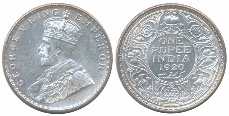George V, Silver Rupee, 1920, Obv: King George V facing to left, Rev: Denomination & Date within circle, wreath surrounds, Very fine. Certified, Authenticated and packed in Temper Proof Coin Card. You are saving Rs. 100/- on this purchase.