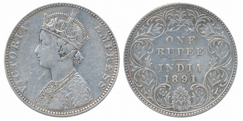 Victoria Empress, Silver Rupee, 1892, Obv: Crowned Bust of Victoria facing left, Legend “VICTORIA EMPRESS”, Rev: Legend “ONE RUPEE INDIA” date with in wreath. Very fine. Certified, Authenticated and packed in Temper Proof Coin Card. You are saving Rs. 100/- on this purchase.