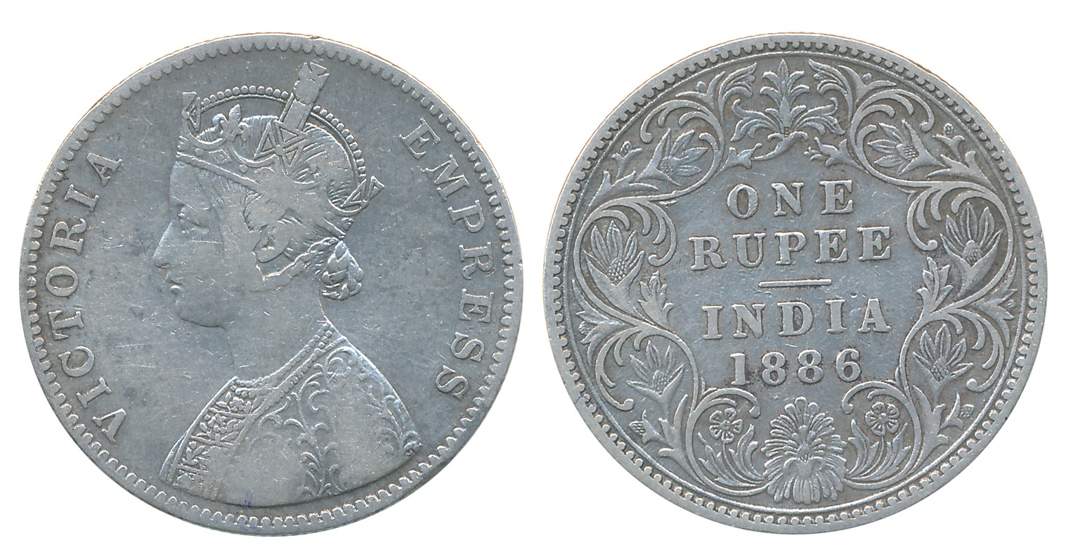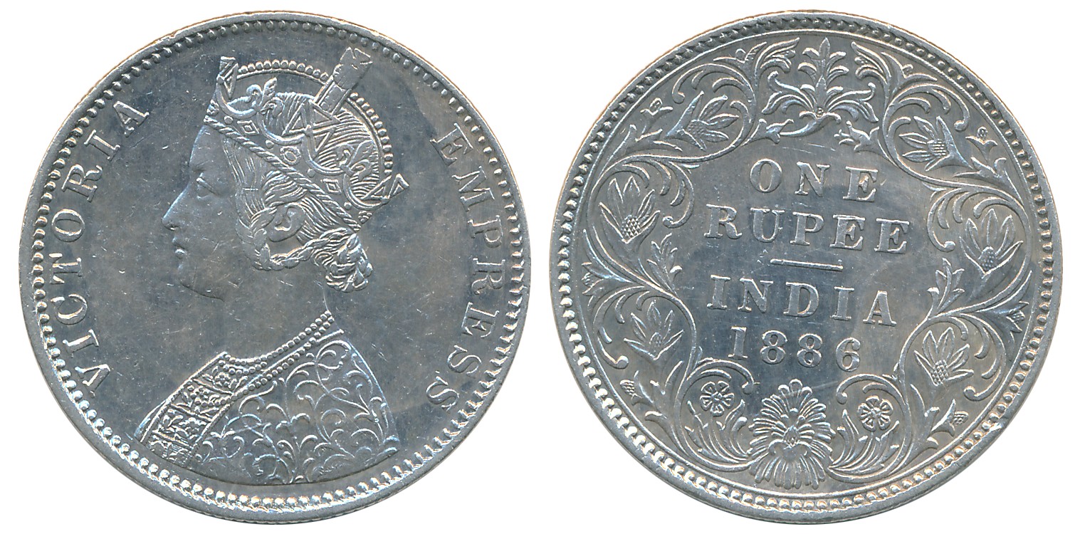 Victoria Empress, Silver Rupee, 1886, Calcutta Mint. About very fine to extremely fine.
