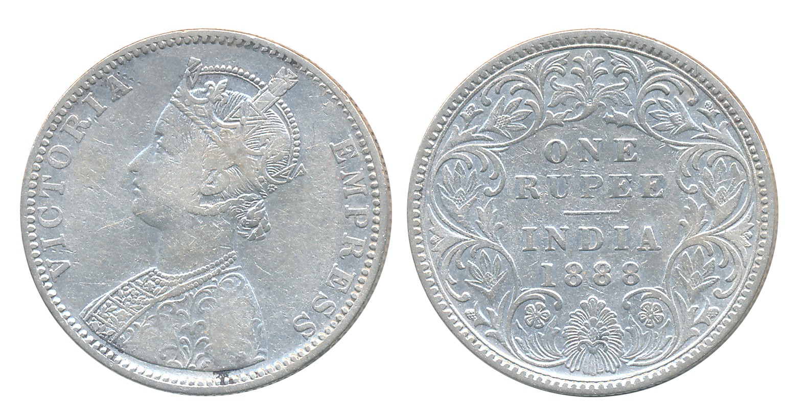 Victoria Empress, Silver Rupee, 1886, Bombay Mint. About very fine to extremely fine.