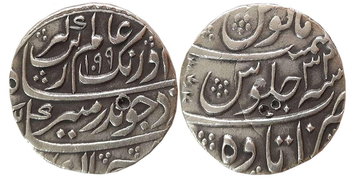 Aurangzeb, Silver Rupee, 11.45g, Surat Mint, AH 1092/ RY 25 (KM# 300.86). Very fine.