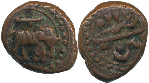 Indo Dutch Copper Stuiver, 26.60g, Negapatnam Mint, Obv: Figure of Goddess kali, Rev: Tamil legend “nakapattanam” in two lines (KM# 28). Very Fine.