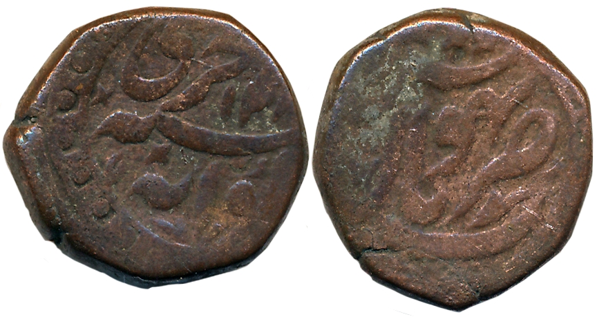 Mysore, Tipu Sultan, Copper 1/4 Paisa, 2.64g, Patan Mint, Obv: Elephant to left, Persian “Te” above, Rev: Denomination “Akhtar” above Mint name (KM# 101.4). Very fine.