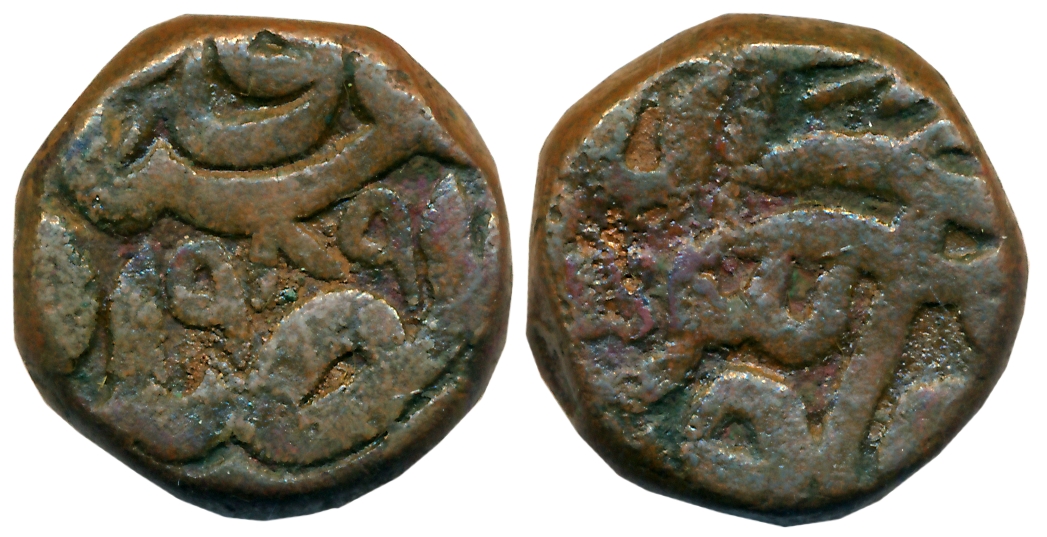 Jhabua, Copper, 12.01g, Obv: Battle axe and Trident (Parsu & Trishul), Rev: Legend (Not listed in KM). Extremely fine, rare.