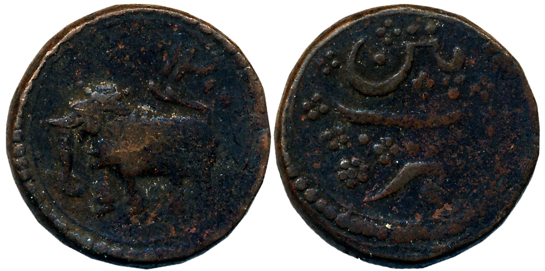 Mysore, Tipu Sultan, Copper Paisa- Zahrah, 11.28g, Patan Mint, Elephant to right (KM# 123.5). Very fine.