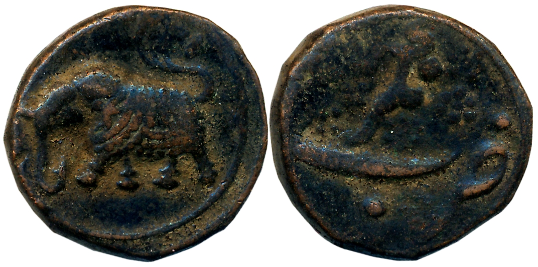 Tipu Sultan, Copper 1/2 Paisa, 5.38g, Patan Mint, AM 1223 (retro), Elephant to left (KM# 122.10). Very fine.