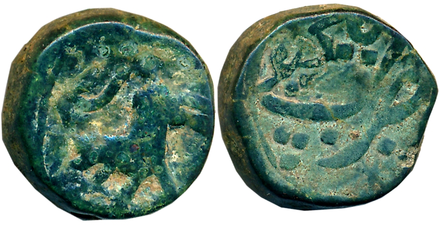 Tipu Sultan, Copper 1/2 Paisa, 5.61g, Patan Mint, AM 1225 (retro), Elephant to right, Persian letter “Be” above Elephant (KM# 122.6). Very fine.