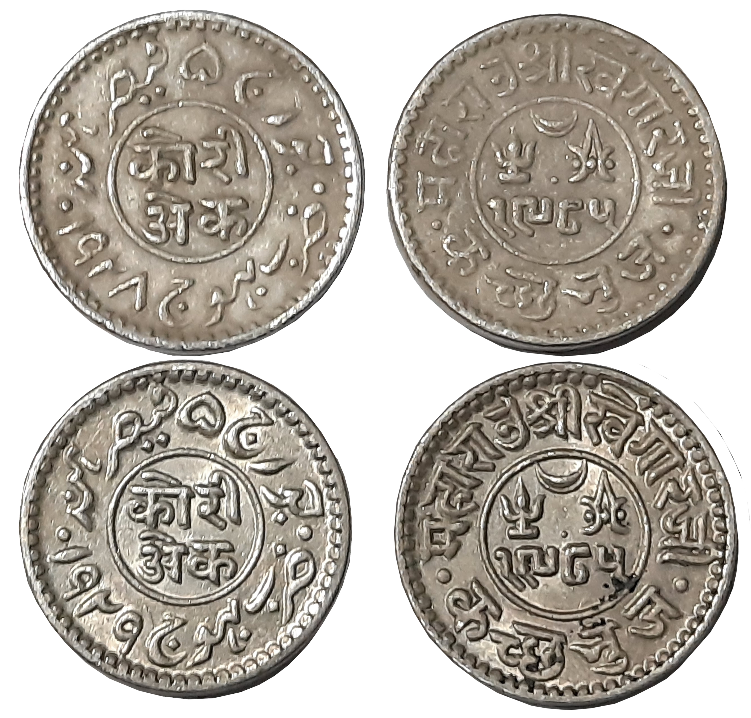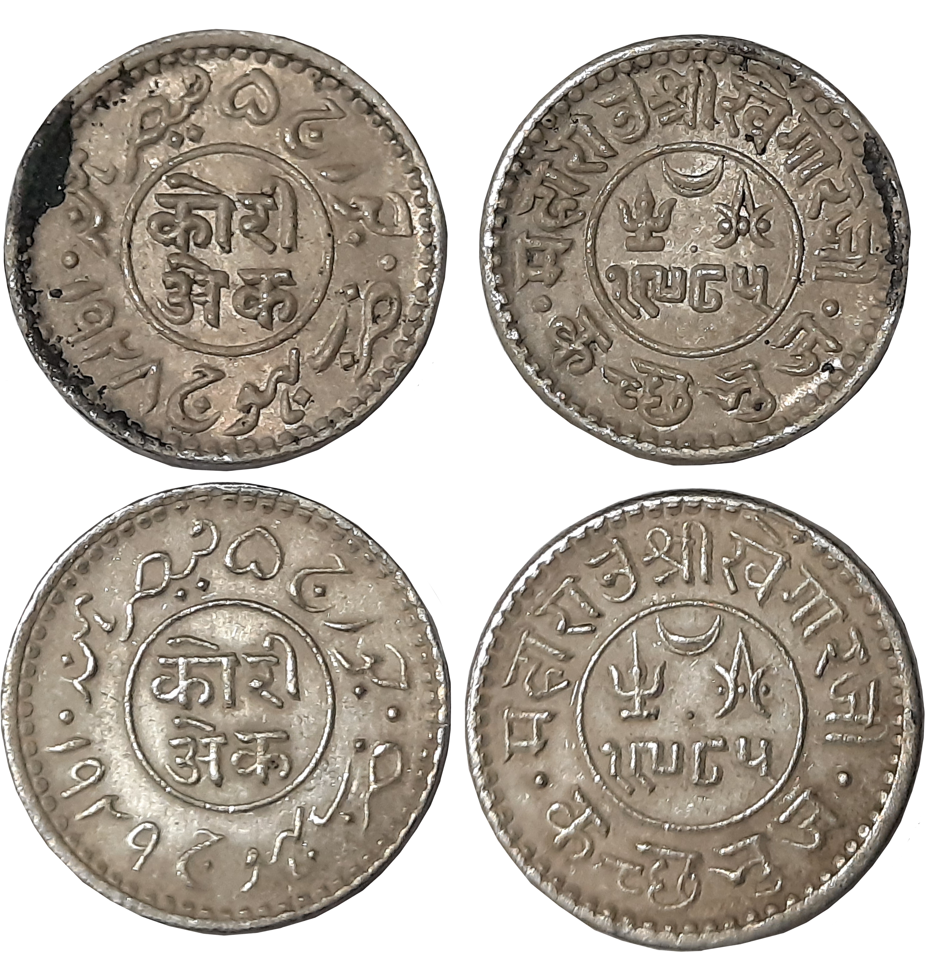 Kutch, Rao Sri Khengarji III, Silver 1 Kori, with the name of George V, VS 1985/ AD 1928 (KM# Y# 59, RS#231.1), VS 1985/ AD 1929 (KM# Y# 59, RS#231.2). very fine+.