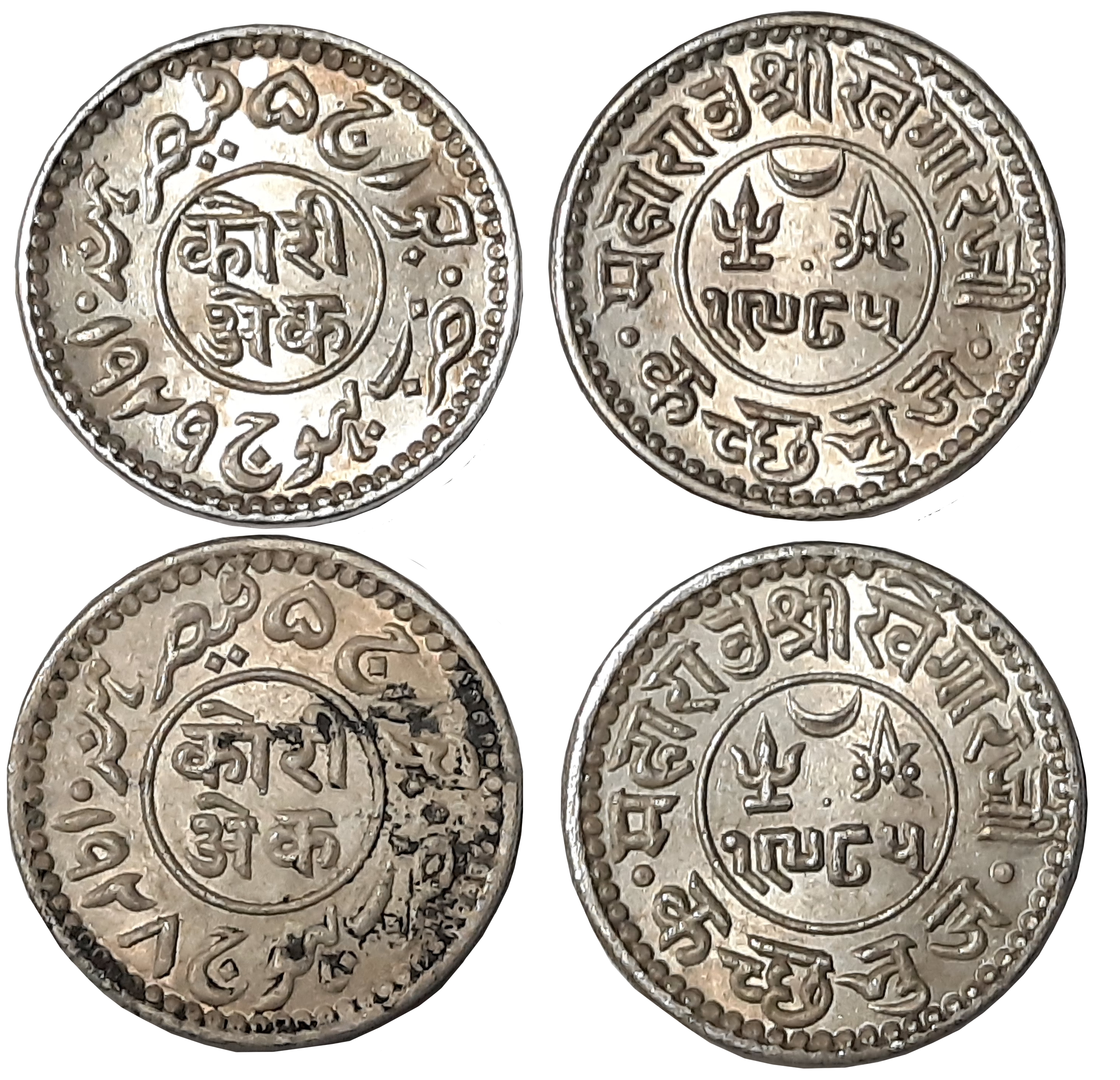 Kutch, Rao Sri Khengarji III, Silver 1 Kori, with the name of George V, VS 1985/ AD 1928 (KM# Y# 59, RS#231.1), VS 1985/ AD 1929 (KM# Y# 59, RS#231.2). very fine+.