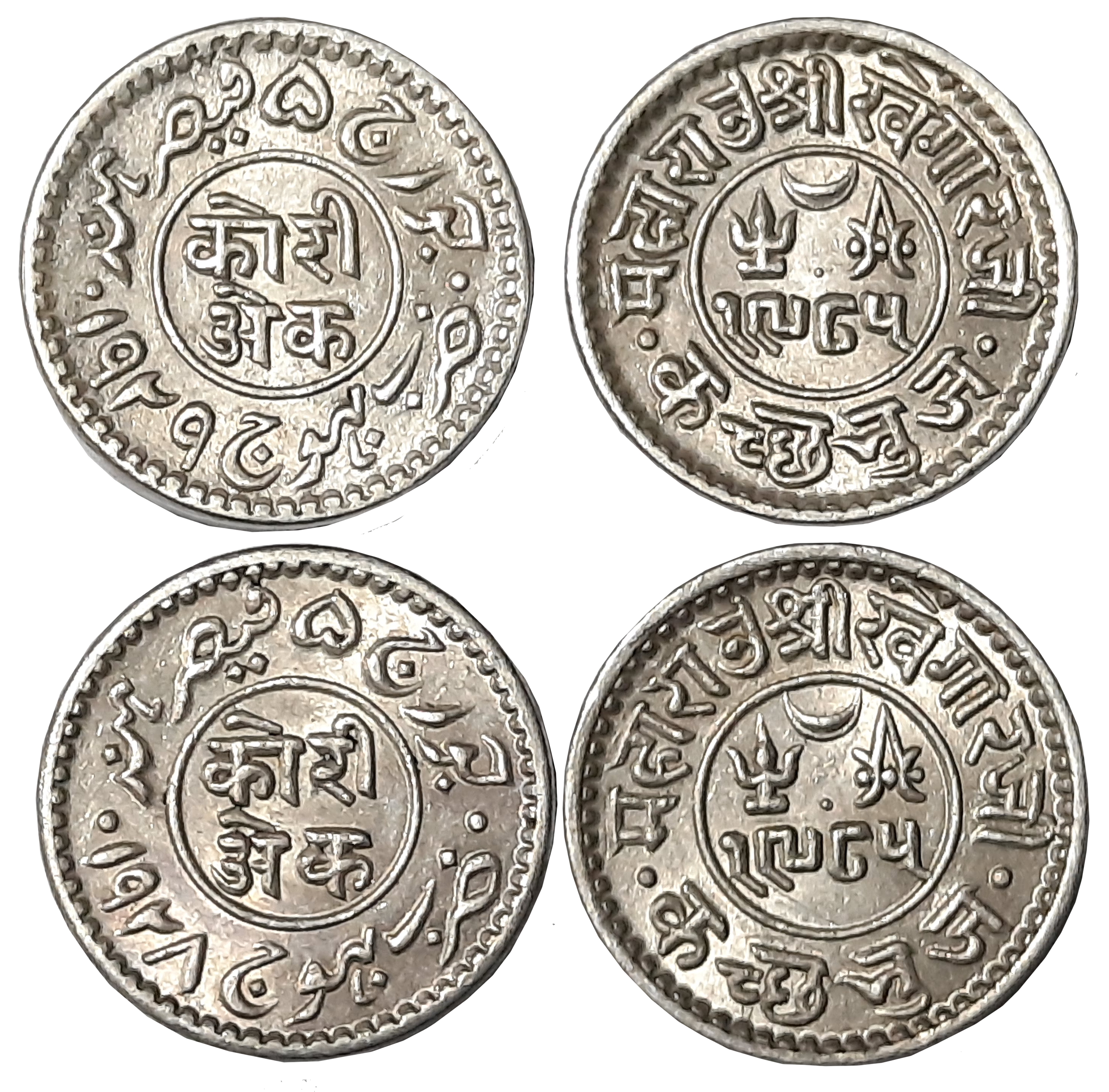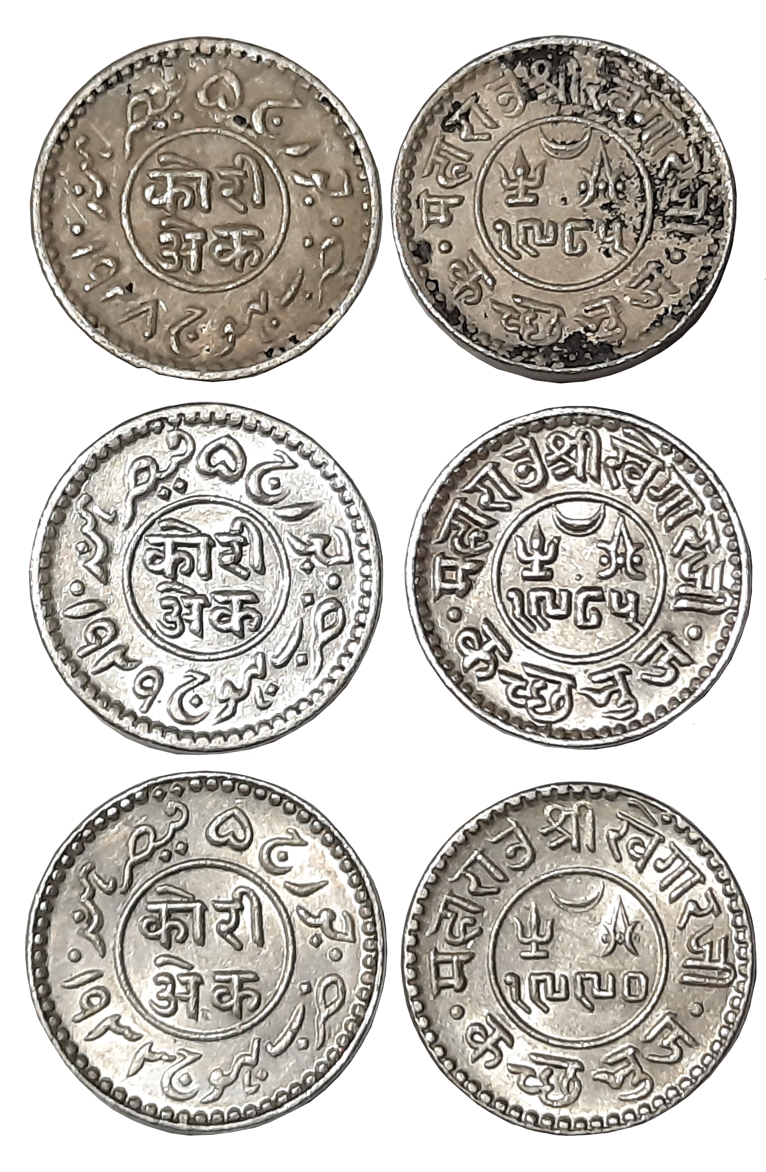 Kutch, Rao Sri Khengarji III, Silver 1 Kori, with the name of George V, VS 1985/ AD 1928 (KM# Y# 59, RS#231.1), VS 1985/ AD 1929 (KM# Y# 59, RS#231.2). Very fine+.