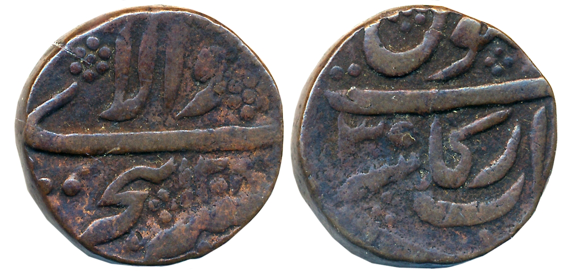 Rohilkhand, Silver Rupee, 11.00g “Badshah Ghazi” type, Anwala Mint, in the name of Shah Alam II, AH 1176/ RY 4, small “Nun” on rev with sword near mint name (KM# 10). Very fine.