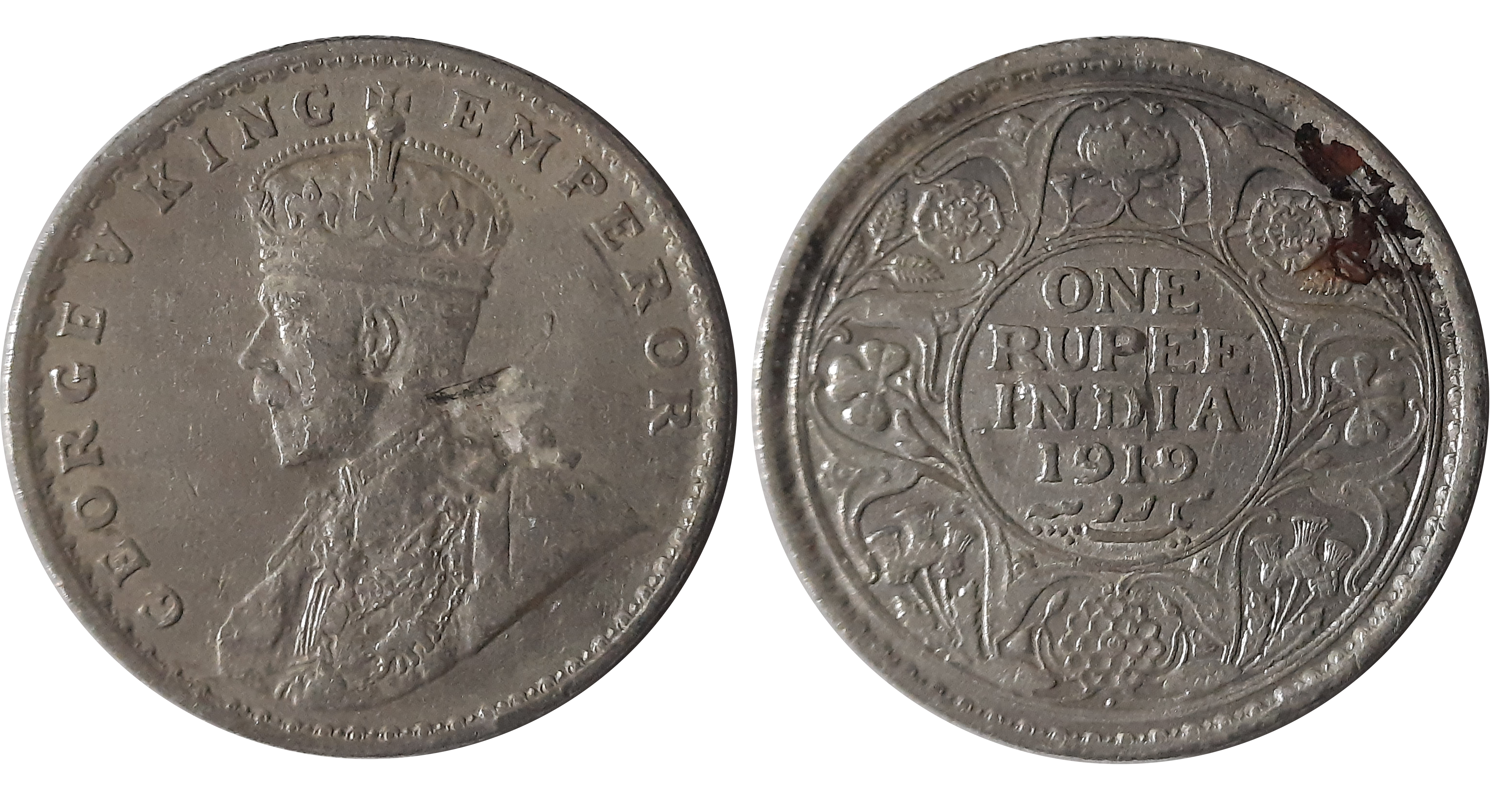 George V, Silver Rupee, 1918, Obv: King George V facing to left, Rev: Denomination & Date within circle, wreath surrounds, Very fine. Certified, Authenticated and packed in Temper Proof Coin Card.