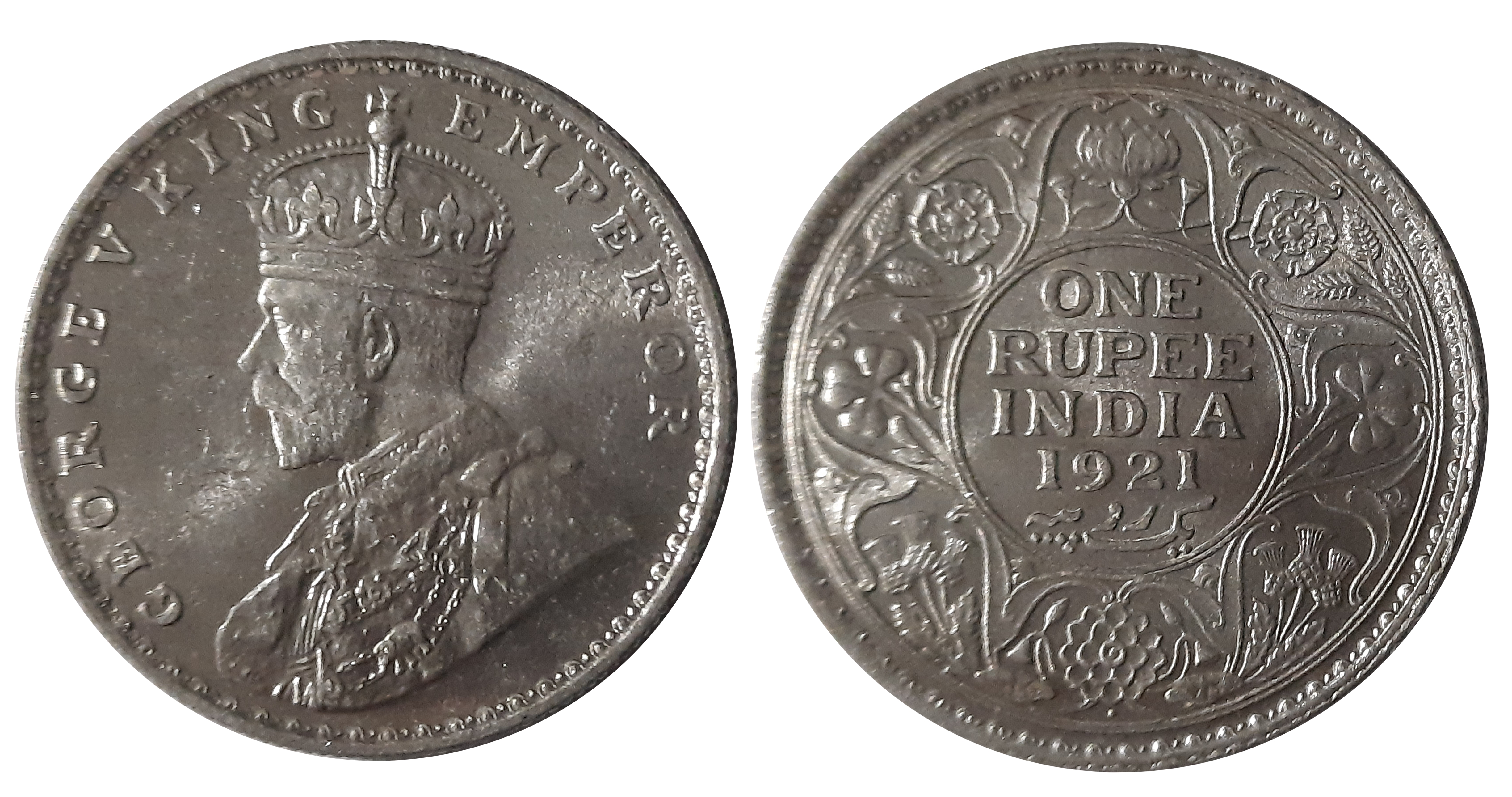 George V, Silver Rupee, 1919, Obv: King George V facing to left, Rev: Denomination & Date within circle, wreath surrounds, Very fine. Certified, Authenticated and packed in Temper Proof Coin Card.