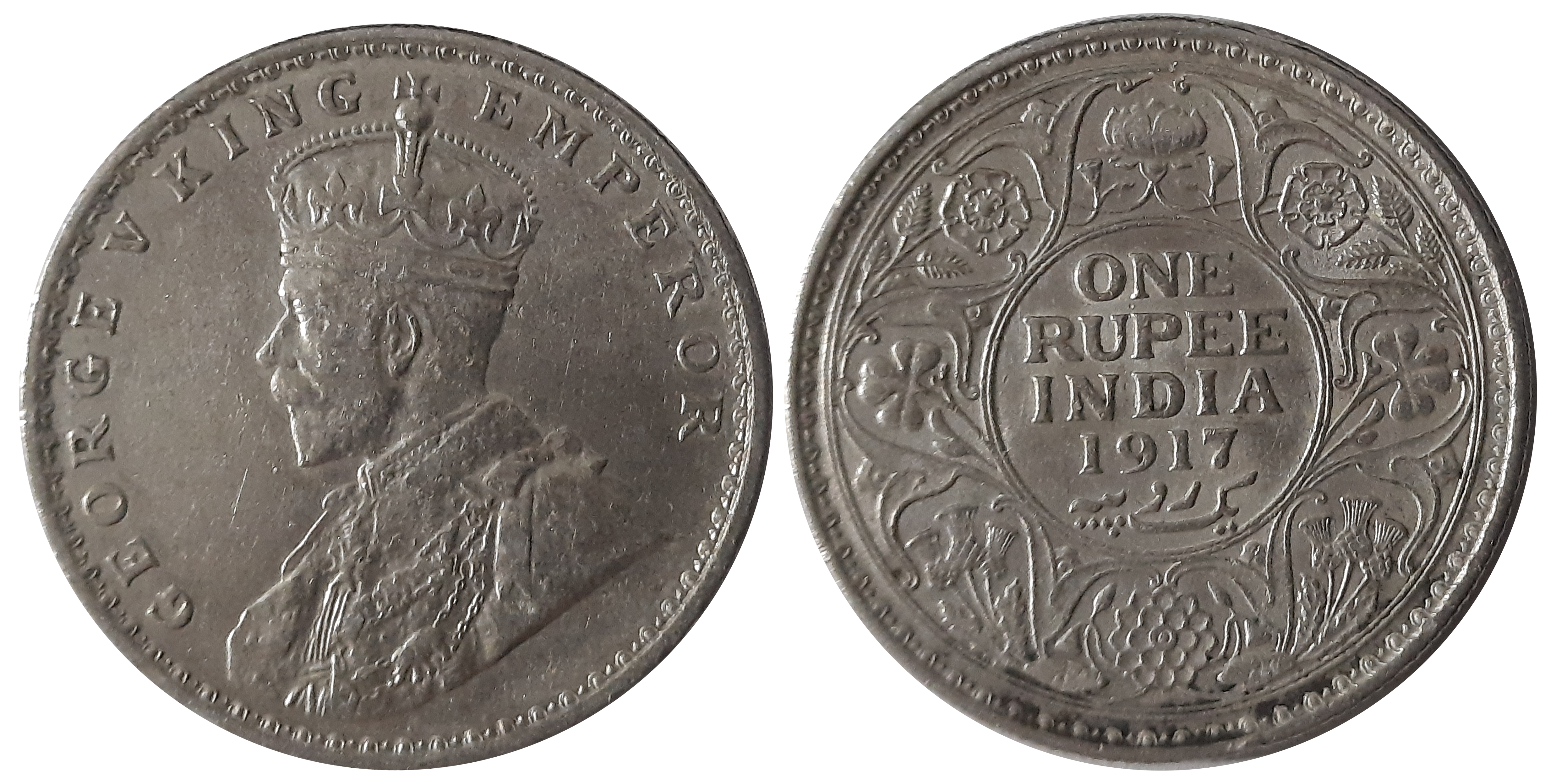 George V, Silver Rupee, 1919, Obv: King George V facing to left, Rev: Denomination & Date within circle, wreath surrounds, Very fine. Certified, Authenticated and packed in Temper Proof Coin Card.