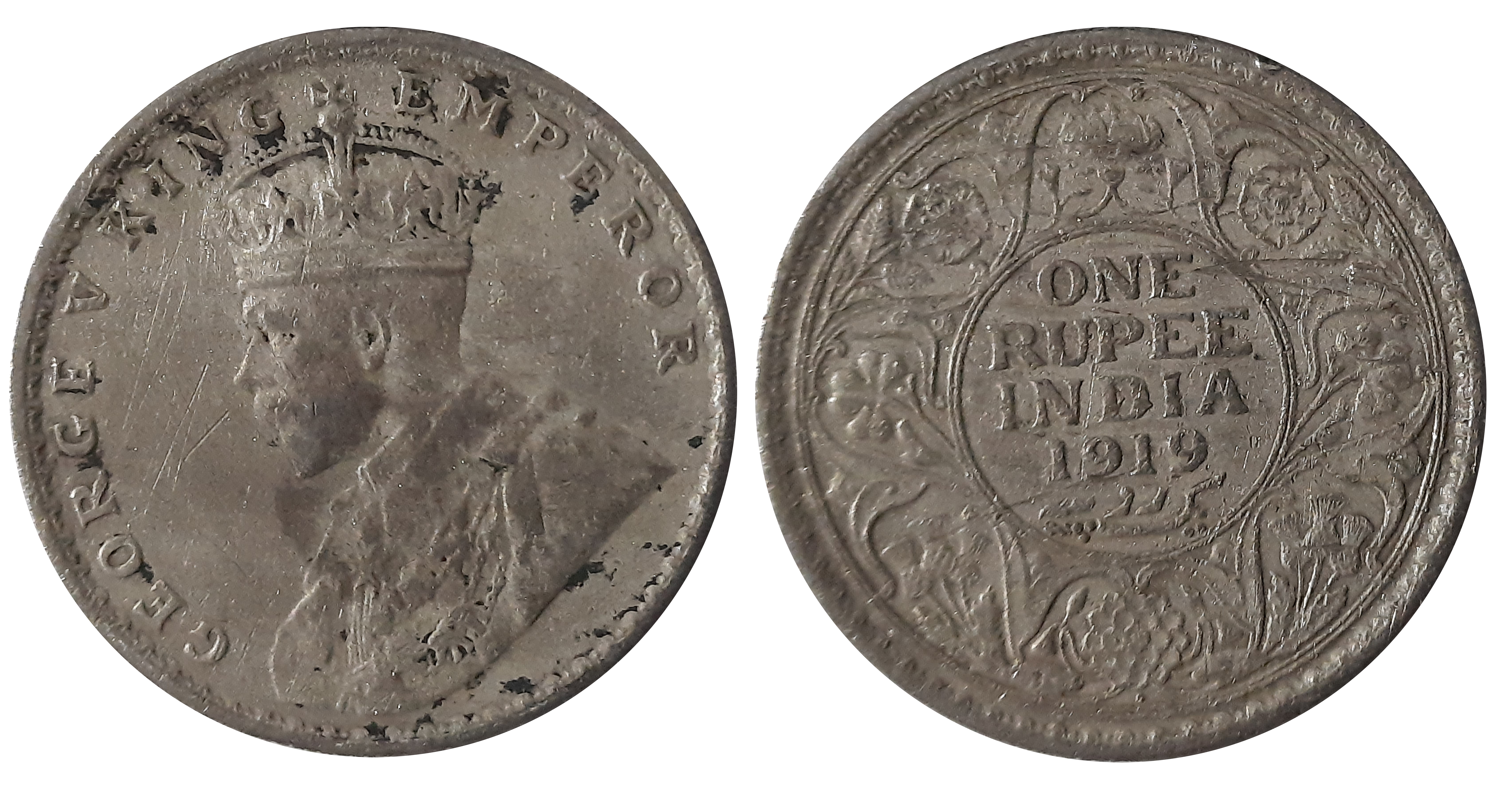 George V, Silver Rupee, 1919, Obv: King George V facing to left, Rev: Denomination & Date within circle, wreath surrounds, Very fine. Certified, Authenticated and packed in Temper Proof Coin Card.