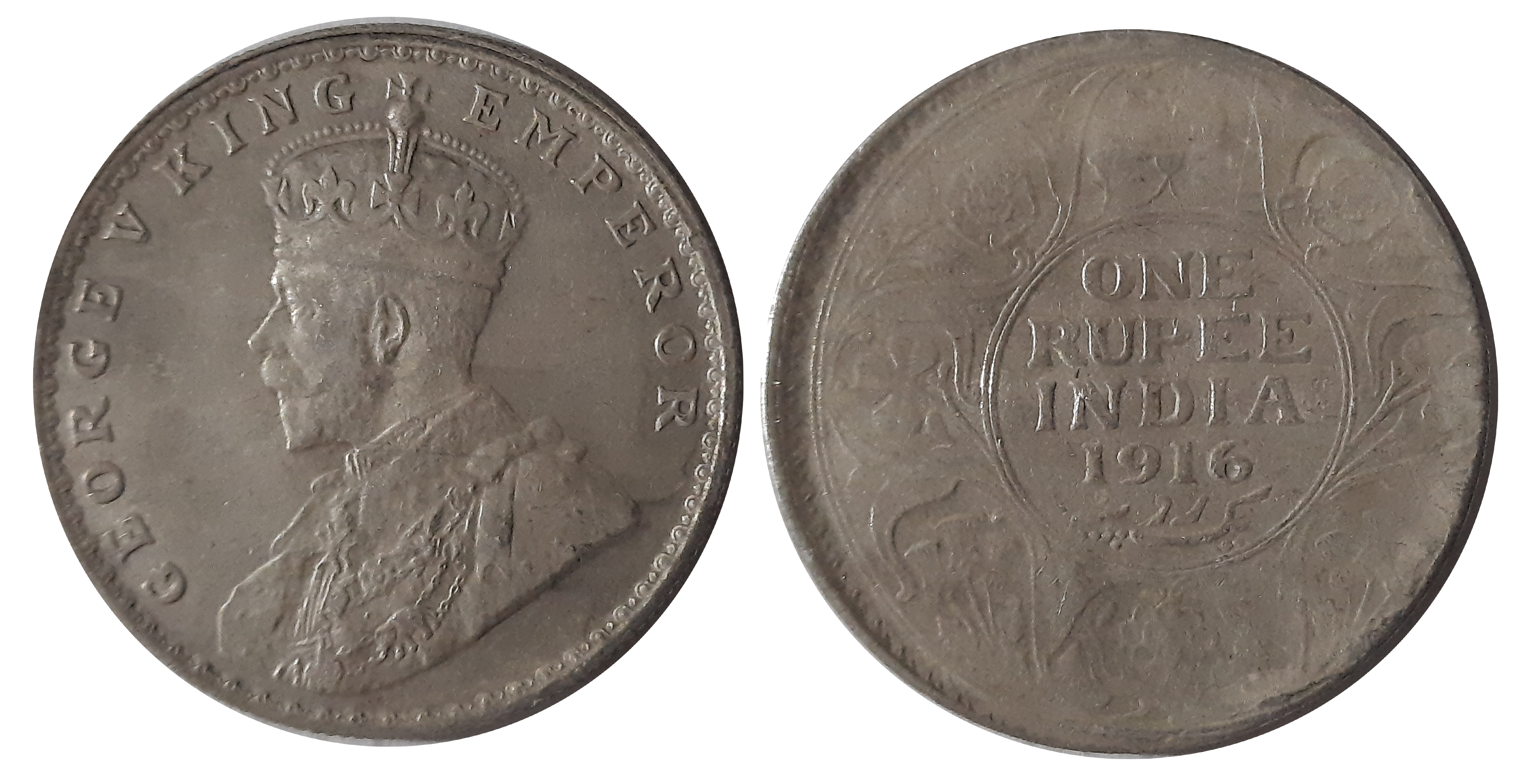 George V, Silver Rupee, 1916, Obv: King George V facing to left, Rev: Denomination & Date within circle, wreath surrounds, Very fine. Certified, Authenticated and packed in Temper Proof Coin Card.