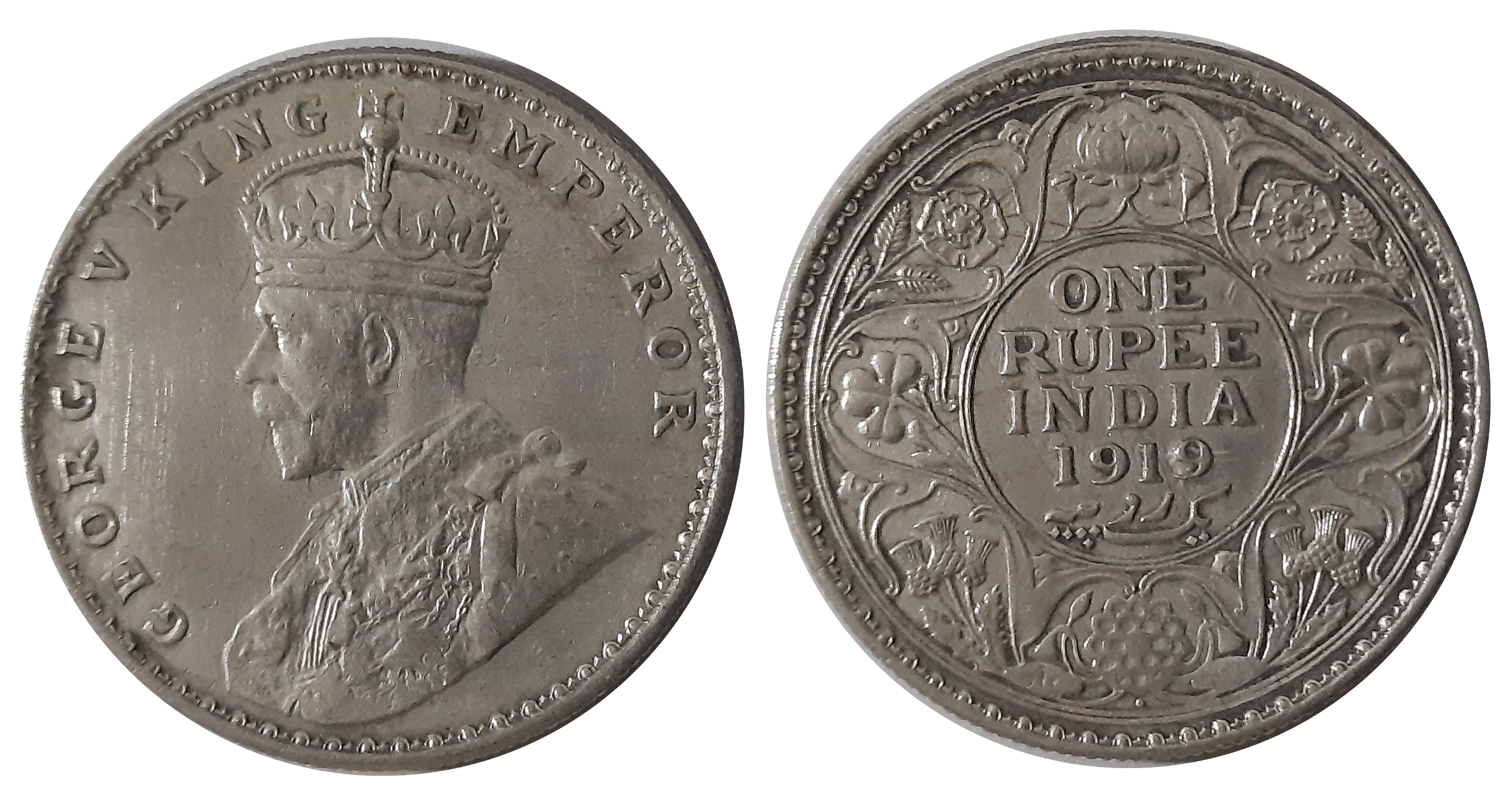 George V, Silver Rupee, 1919, Obv: King George V facing to left, Rev: Denomination & Date within circle, wreath surrounds, Very fine. Certified, Authenticated and packed in Temper Proof Coin Card.