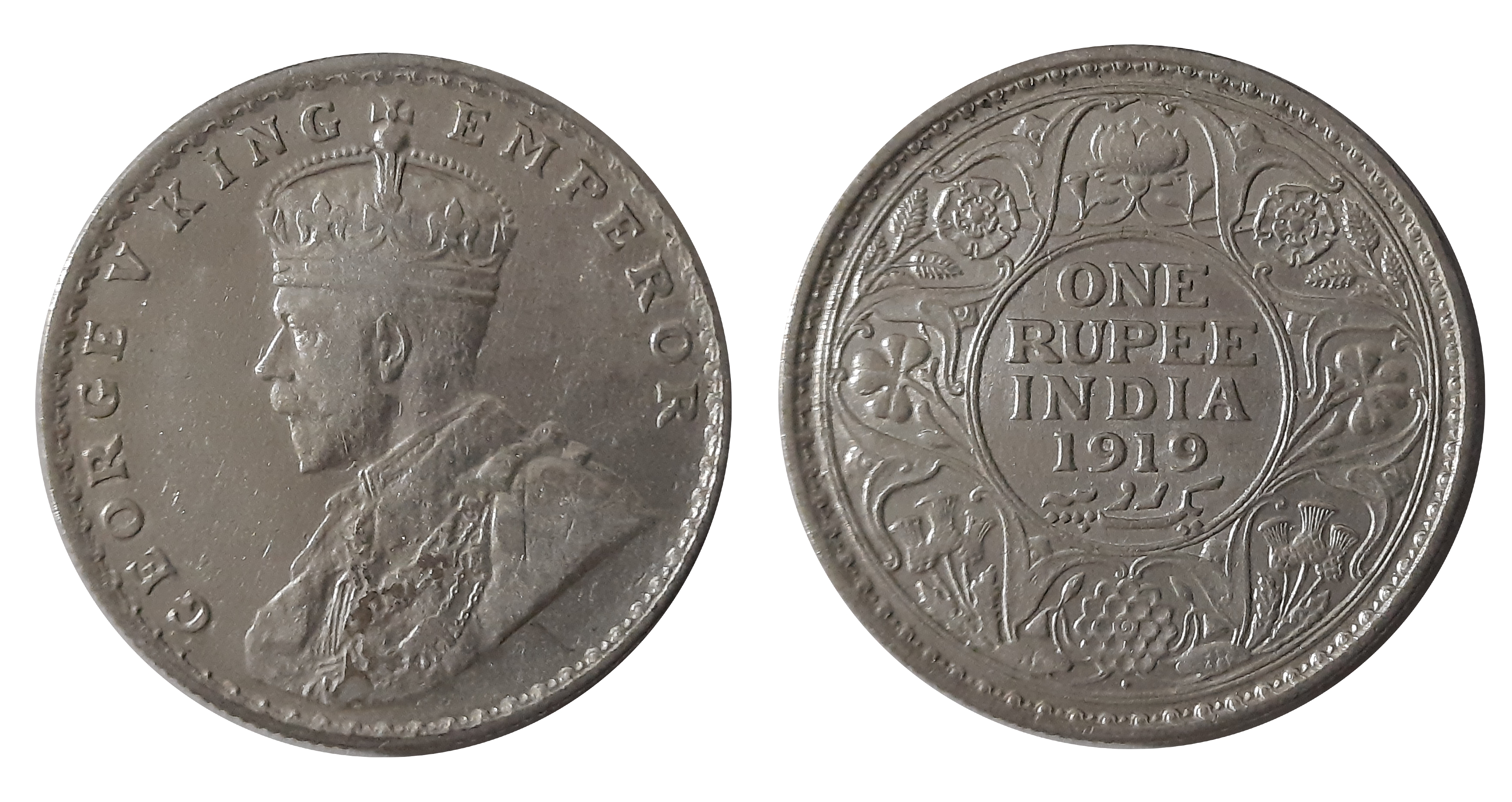George V, Silver Rupee, 1919, Obv: King George V facing to left, Rev: Denomination & Date within circle, wreath surrounds, Very fine. Certified, Authenticated and packed in Temper Proof Coin Card.