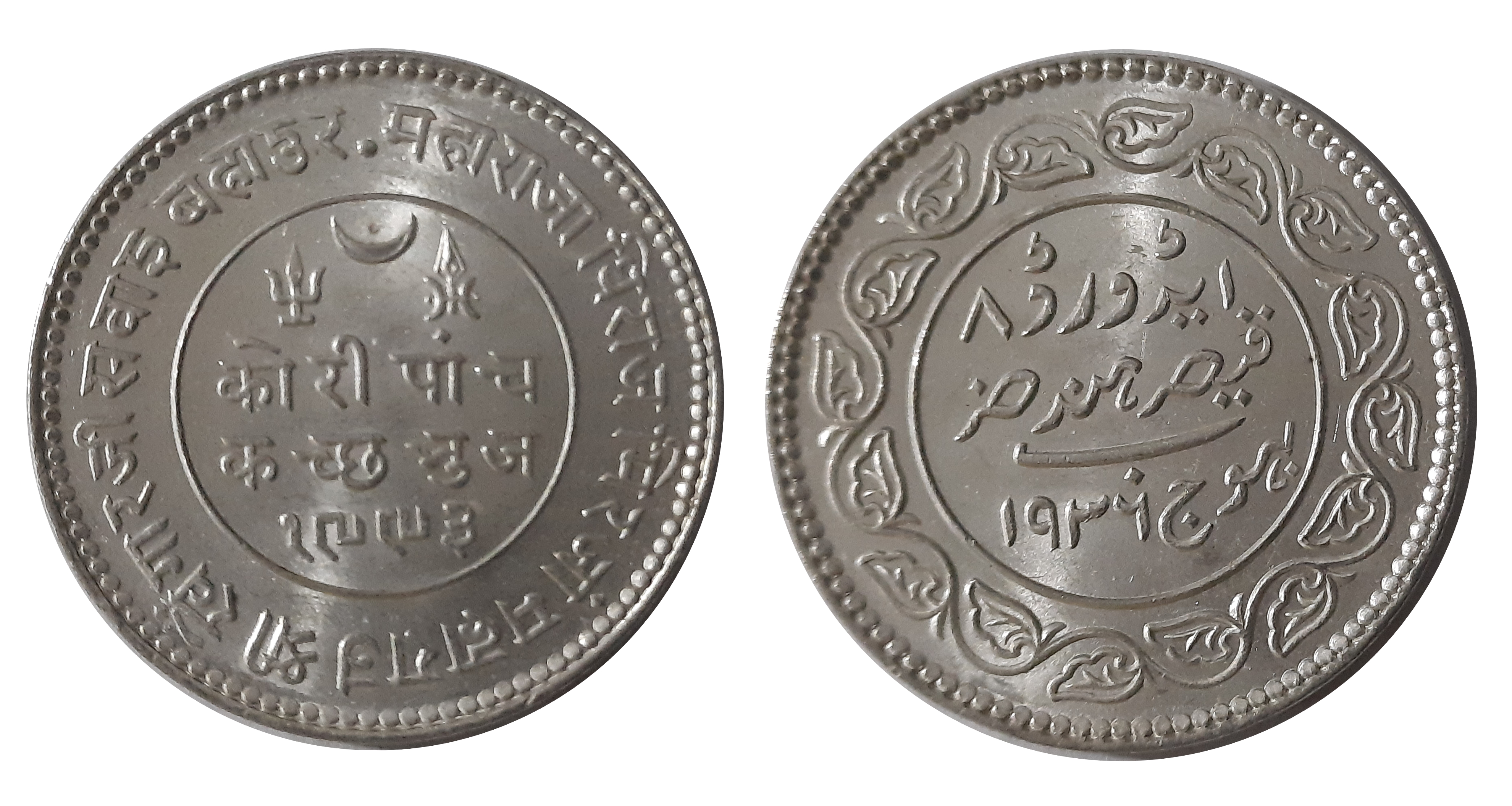 Rao Sri Khengarji III, Silver 5 Kori, AD 1933/ VS 1990, with the name of (KM# Y# 53a, RS# 233.59) GV. Extremely Fine. Certified, Authenticated and packed in Temper Proof Coin Card.