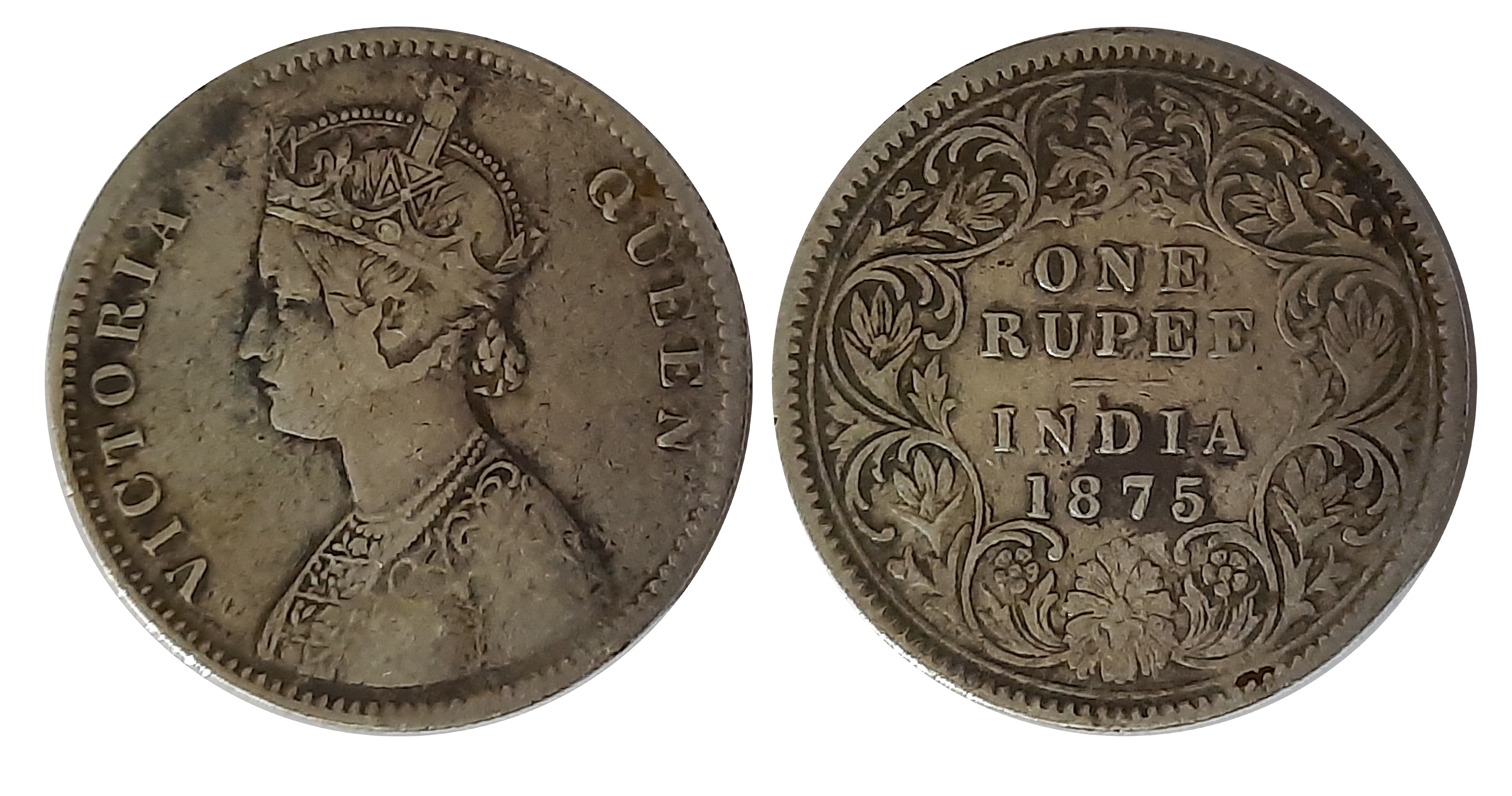 Victoria Empress, Silver Rupee, 1881, Obv: Crowned Bust of Queen Victoria facing left, Legend “VICTORIA QUEEN”, Rev: Legend “ONE RUPEE INDIA” date with in wreath. Very fine.