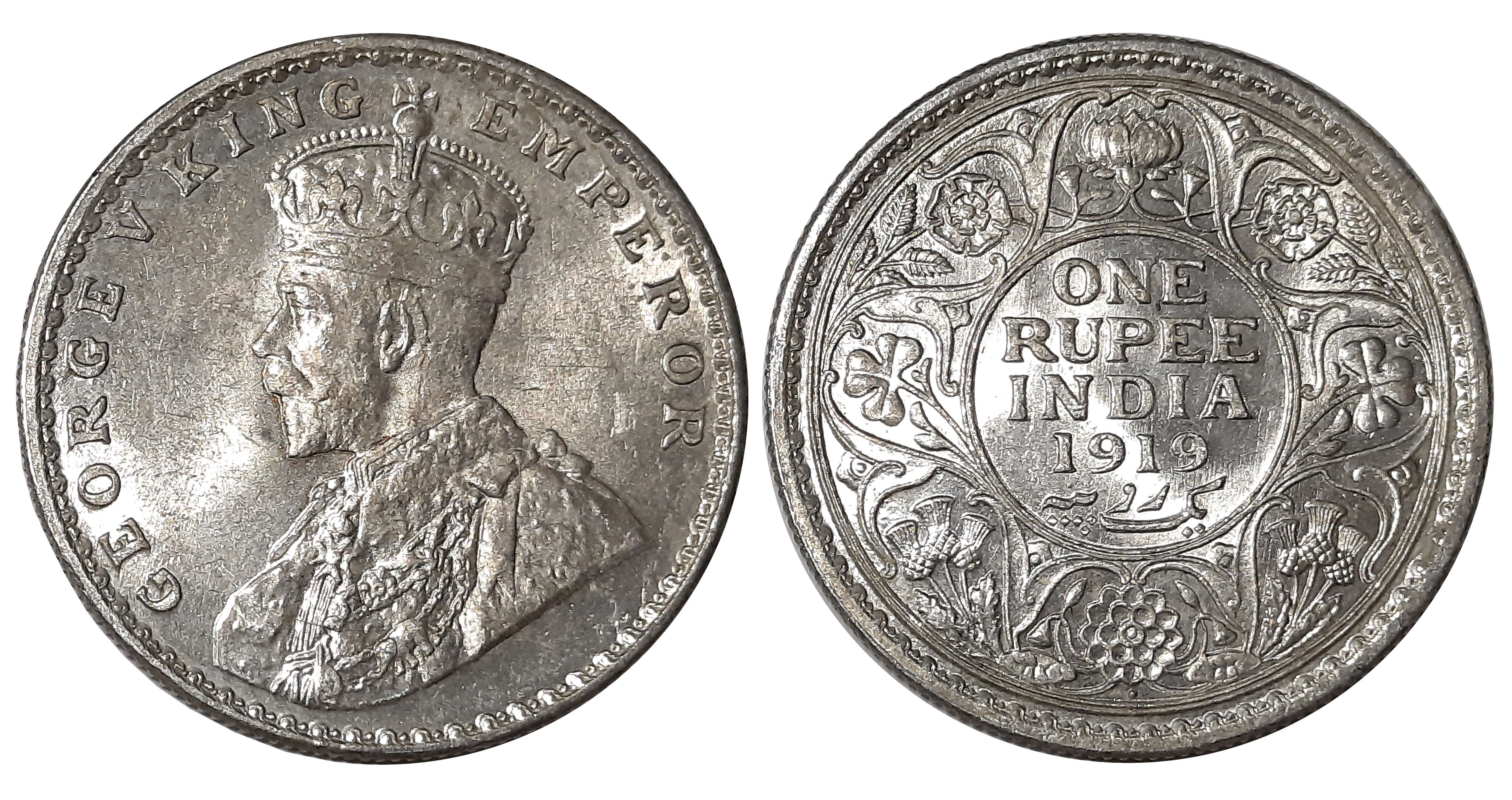 Silver Rupee, 1919, Obv: King George V facing to left, Rev: Denomination & Date within circle, wreath surrounds, Very fine. Certified, Authenticated and packed in Temper Proof Coin Card.