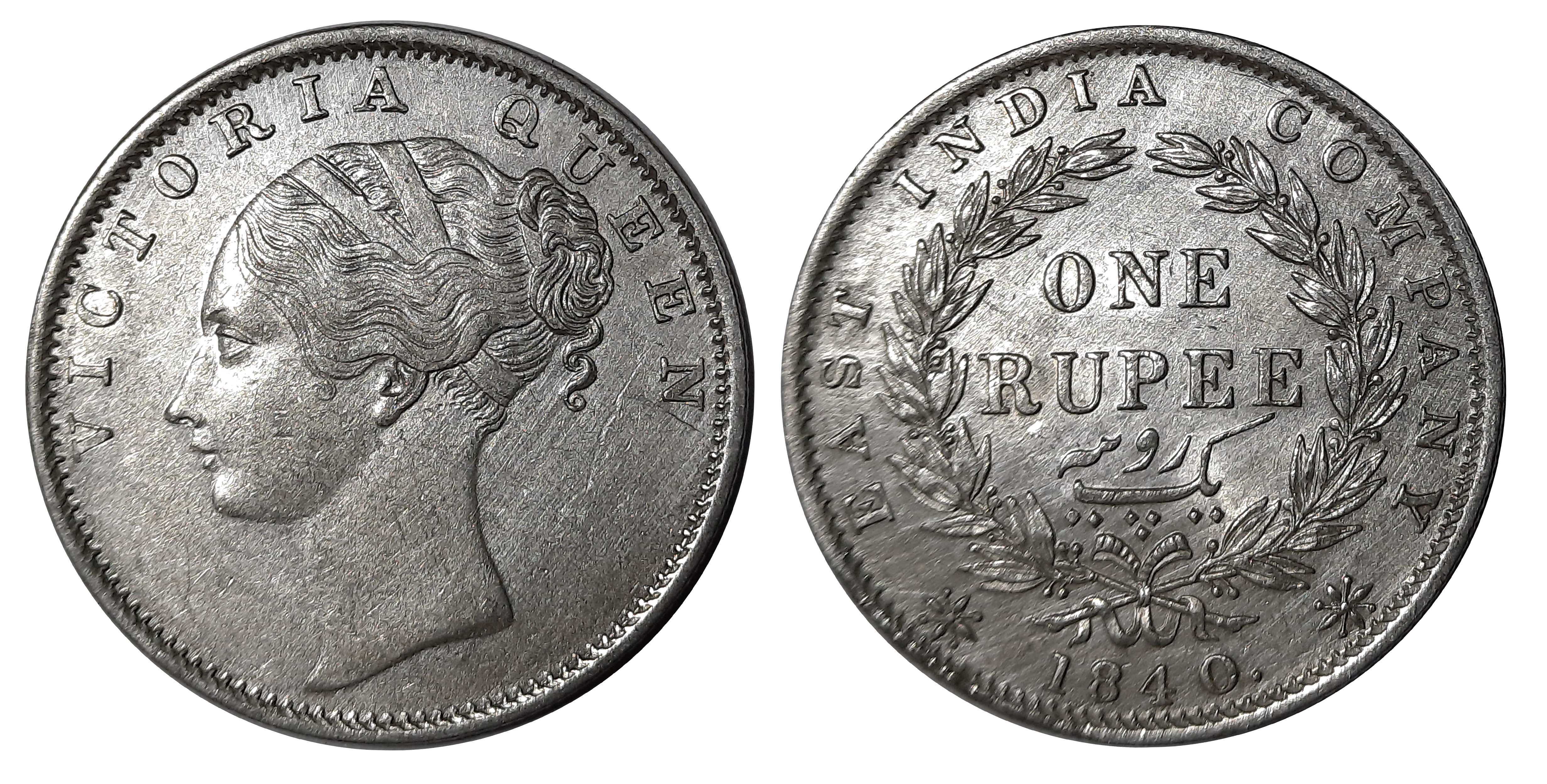 Uniform Currency, Victoria Queen, Silver Rupee, 1840, Continuous legend. Extremely fine to extremely fine+.