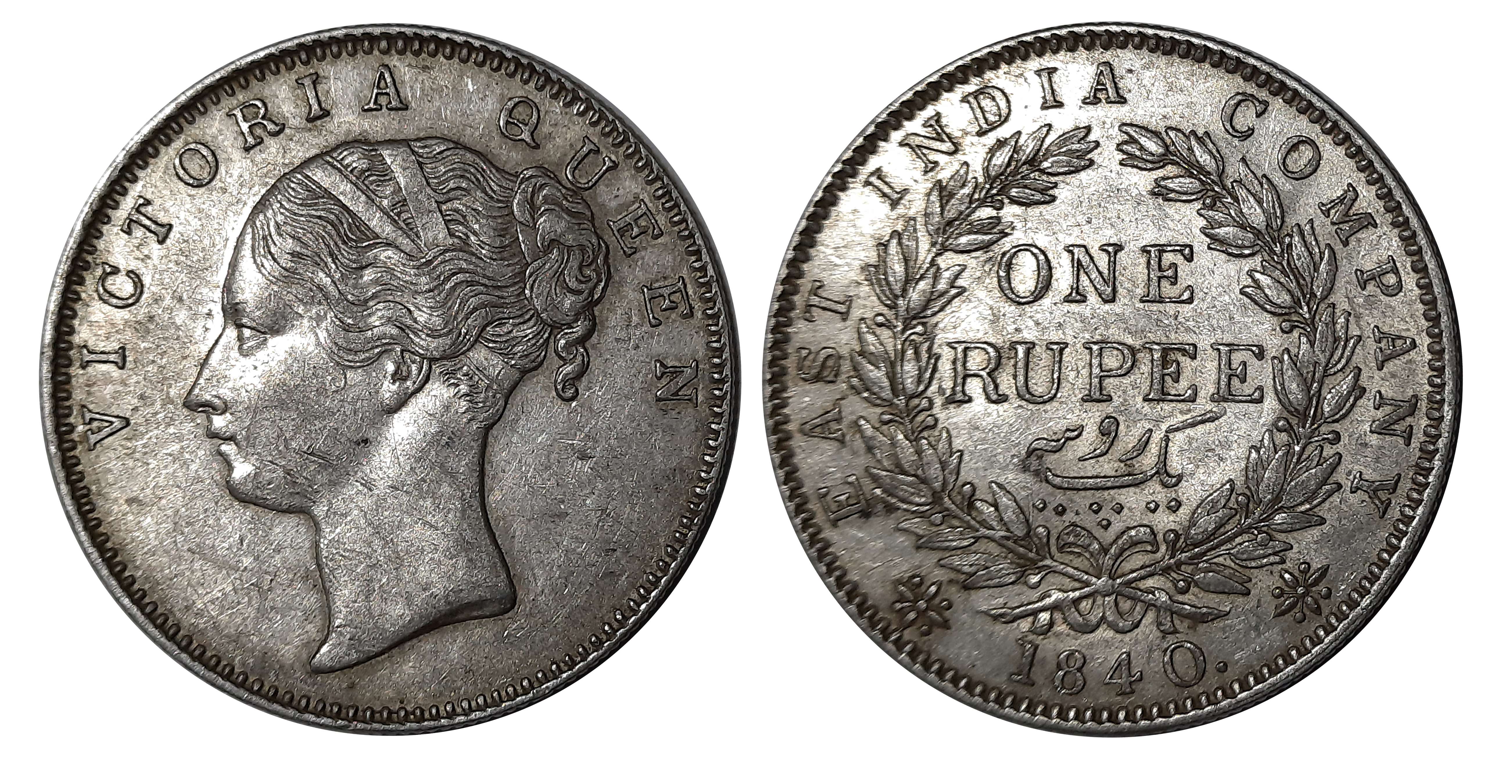 Uniform Currency, Victoria Queen, Silver Rupee, 1840, Continuous legend. Extremely fine to extremely fine+.