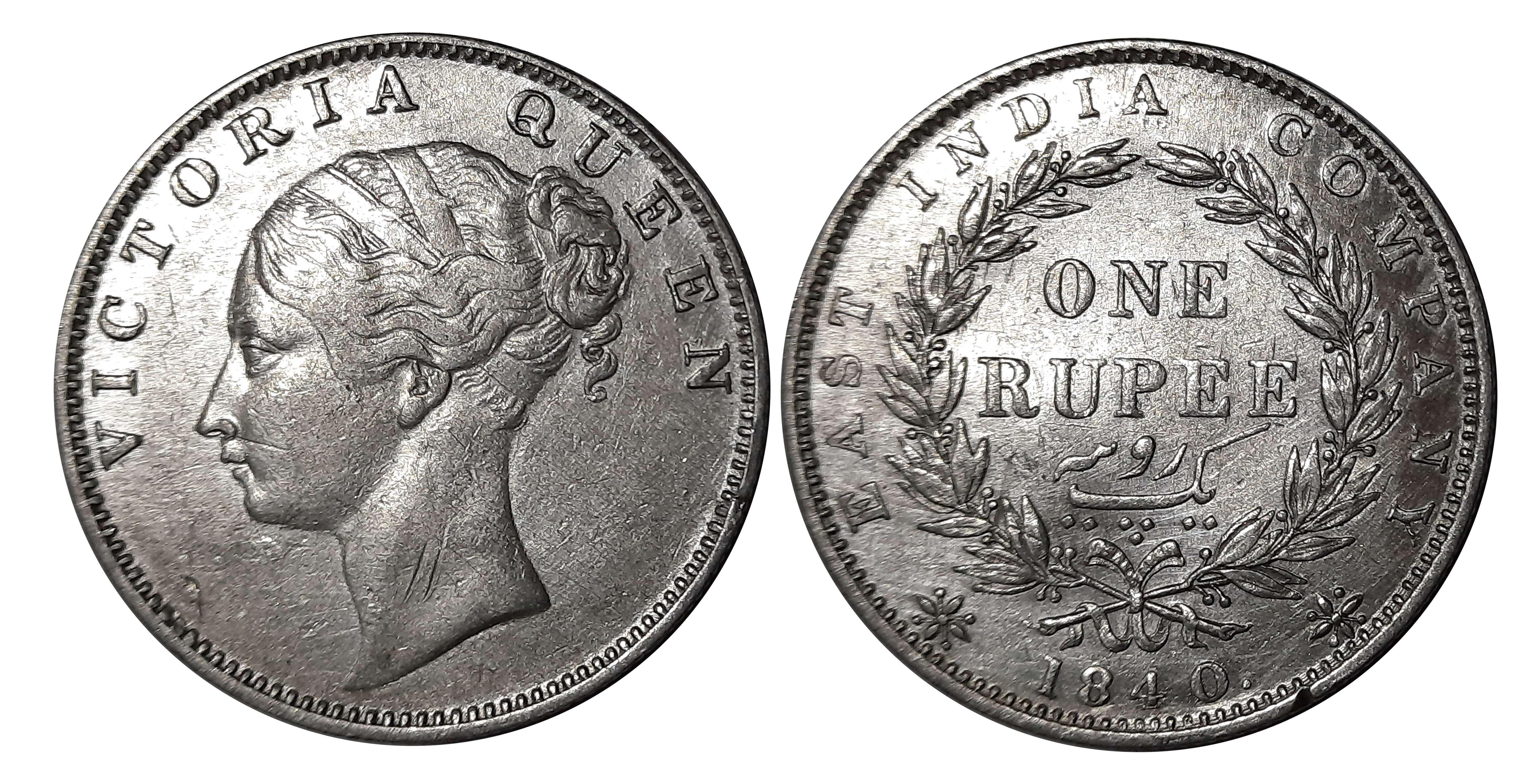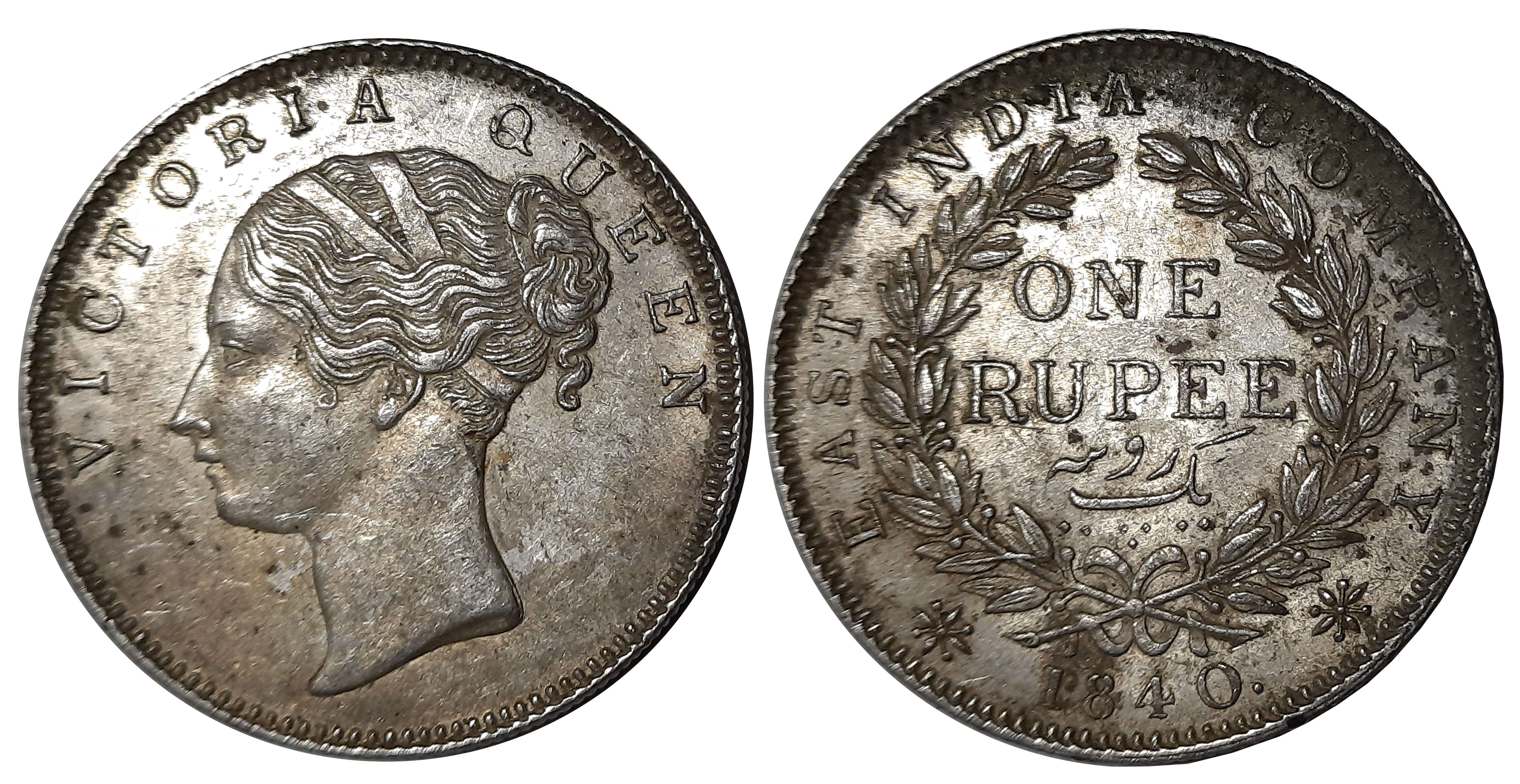Uniform Currency, Victoria Queen, Silver Rupee, 1840, Continuous legend. Extremely fine to extremely fine+.