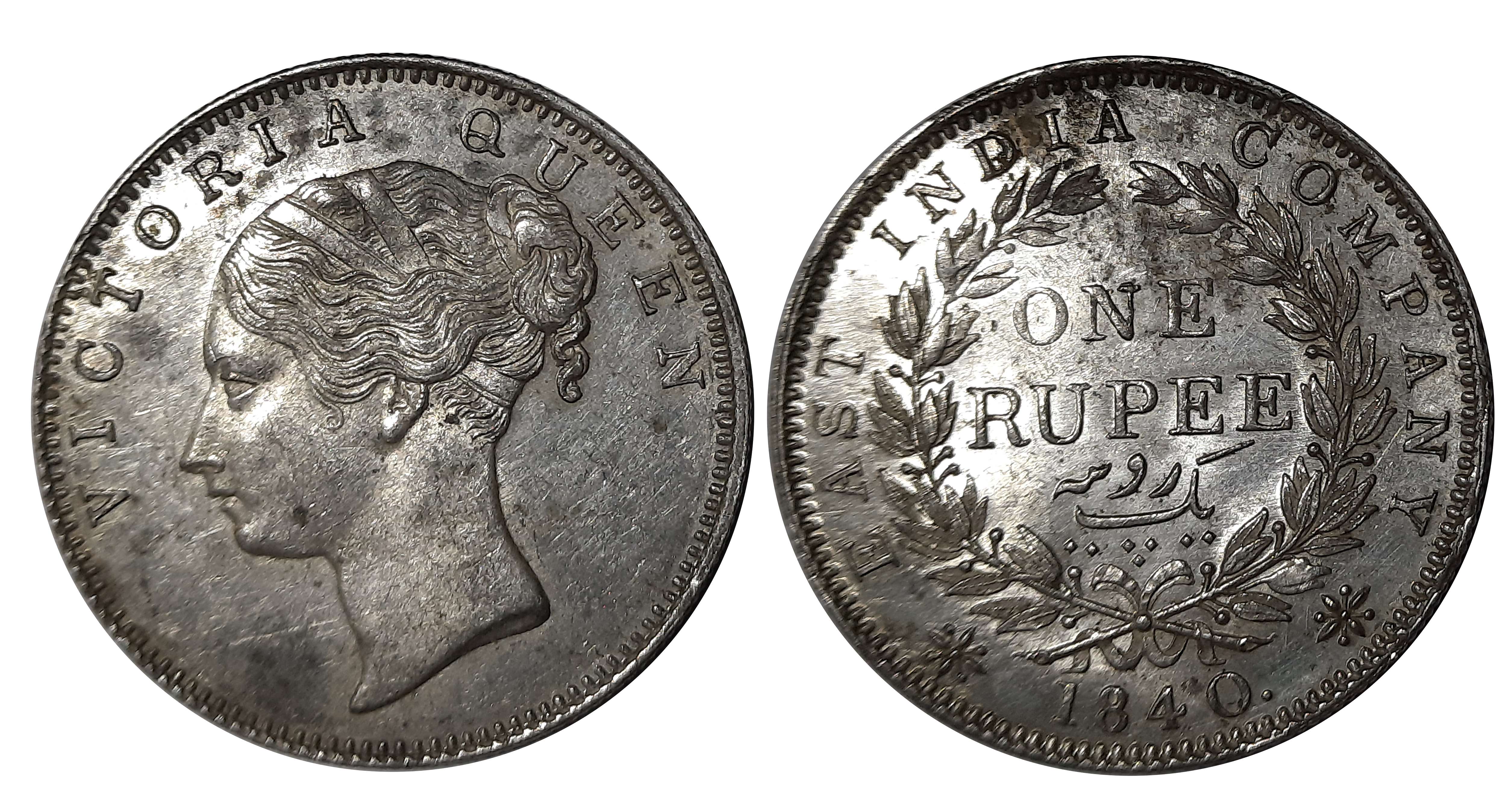 Uniform Currency, Victoria Queen, Silver Rupee, 1840, Continuous legend. Extremely fine to extremely fine+.