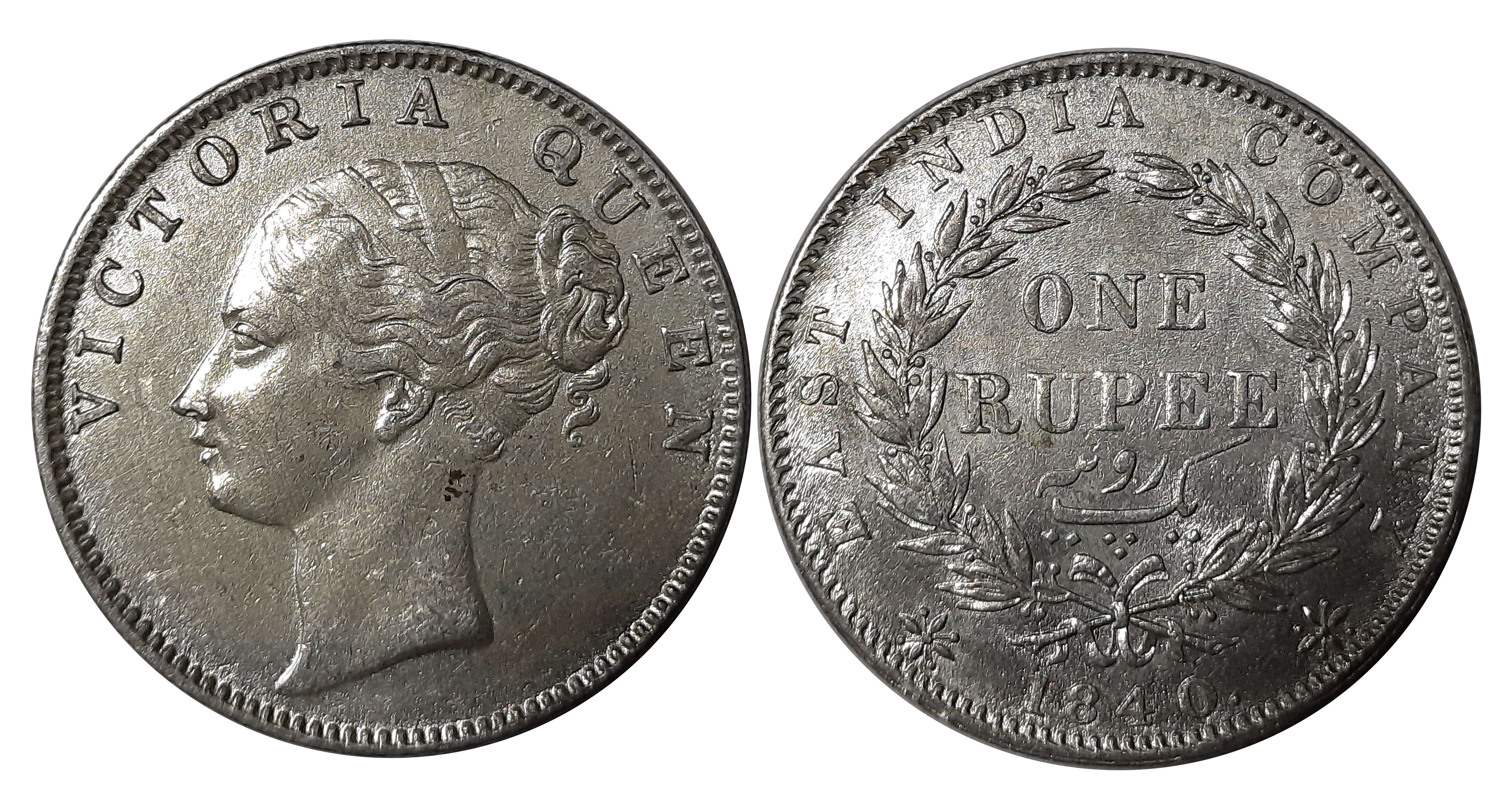 Victoria Queen, Uniform Currency, Victoria Queen, Silver Rupee, 1840, Continuous legend. Extremely fine to extremely fine+.