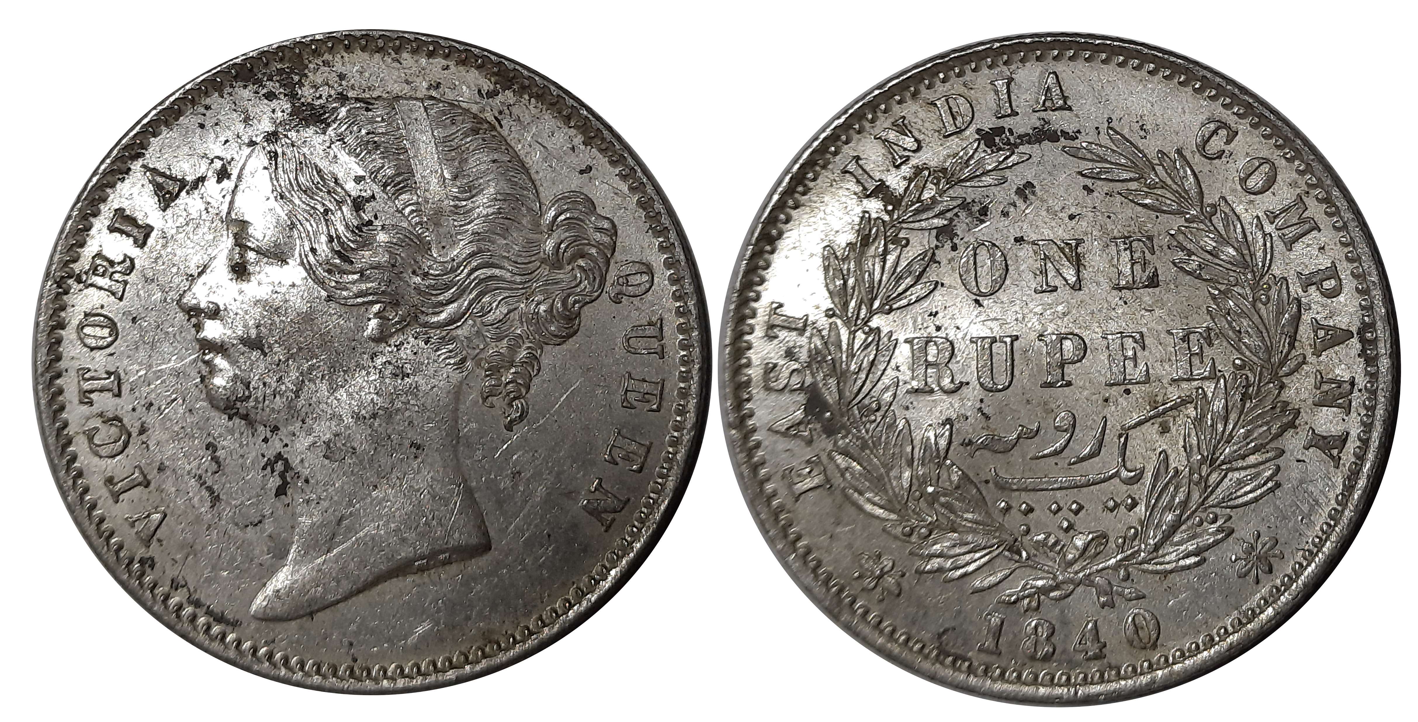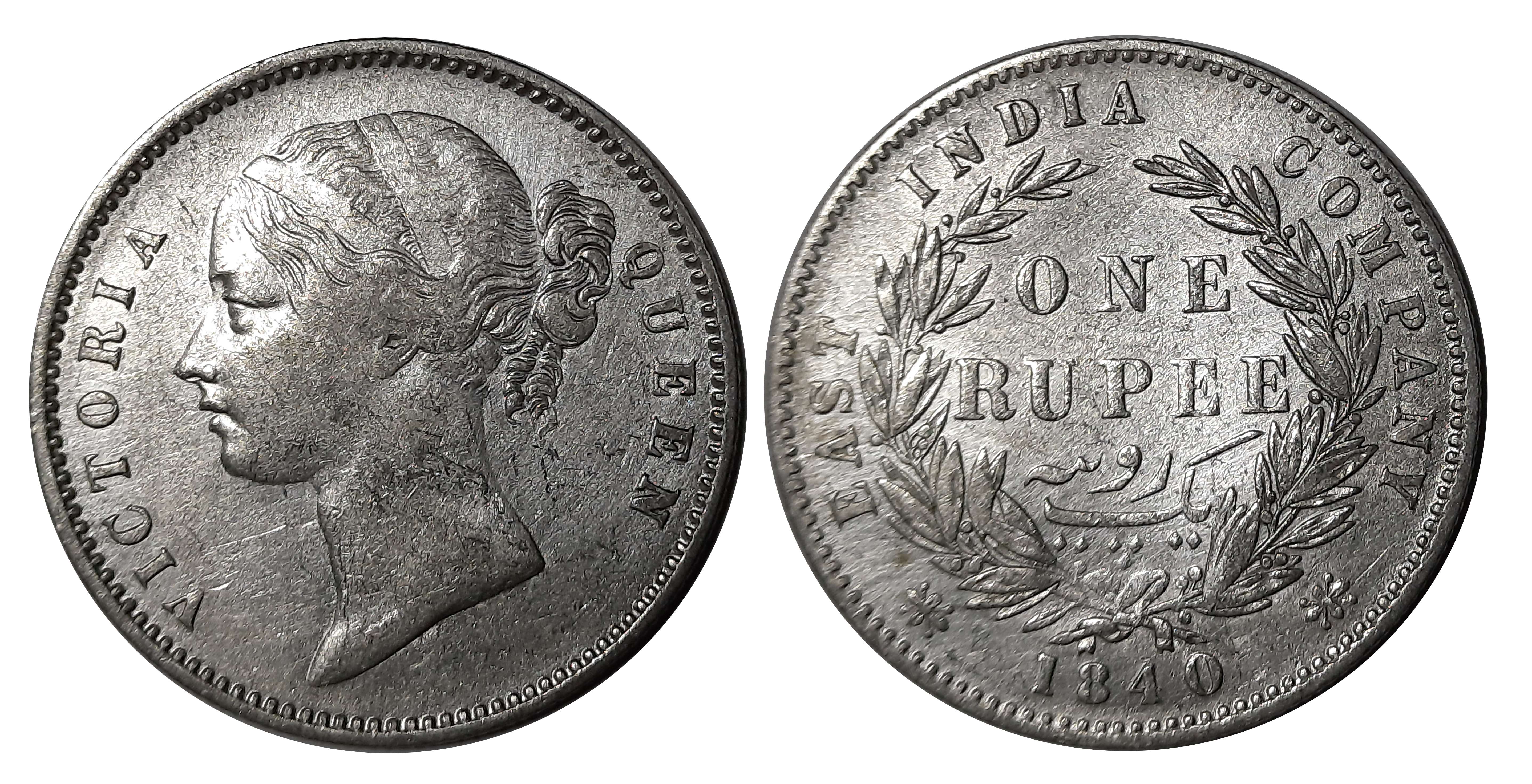 Victoria Queen, Uniform Currency, Victoria Queen, Silver Rupee, 1840, Divided legend. Extremely fine to extremely fine+.