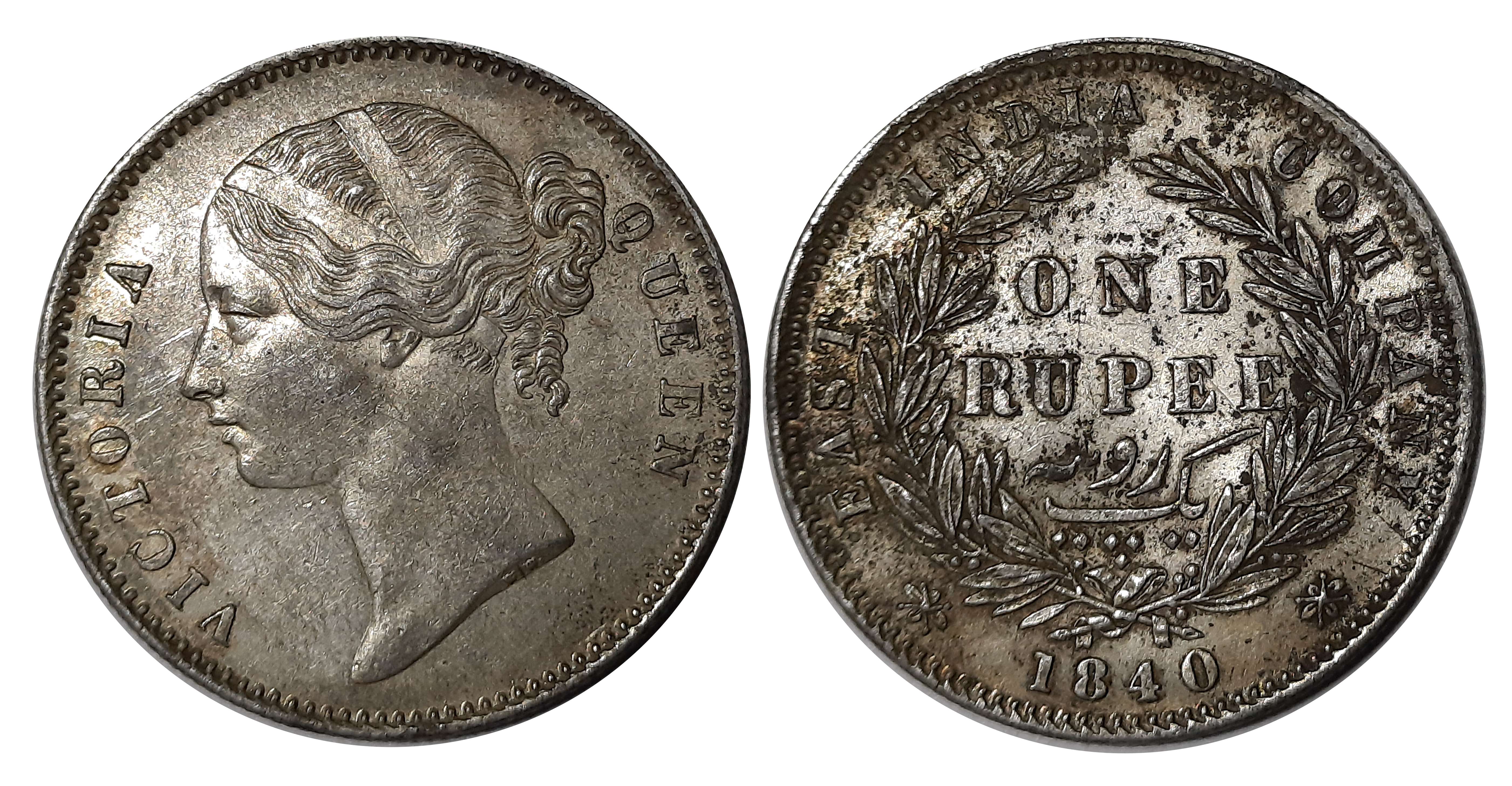 Victoria Queen, Uniform Currency, Victoria Queen, Silver Rupee, 1840, Divided legend. Extremely fine to extremely fine+.