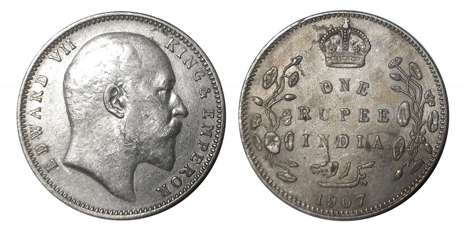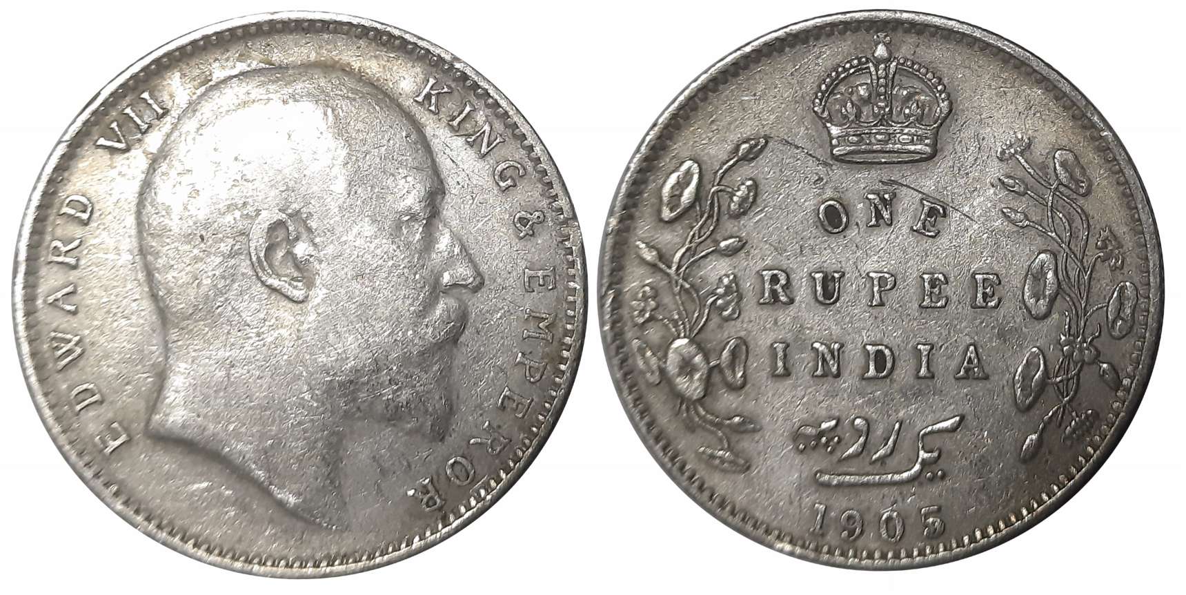 Edward VII, Silver Rupee, 1906, Obv: Bust of King Emperor facing right, Legend “EDWARD II, KING EMPEROR” above, Rev: Legend “ONE RUPEE INDIA” date below in wreath crown above, Persian Legend Yek Rupaya. Very fine. Certified, Authenticated and packed in Temper Proof Coin Card.
