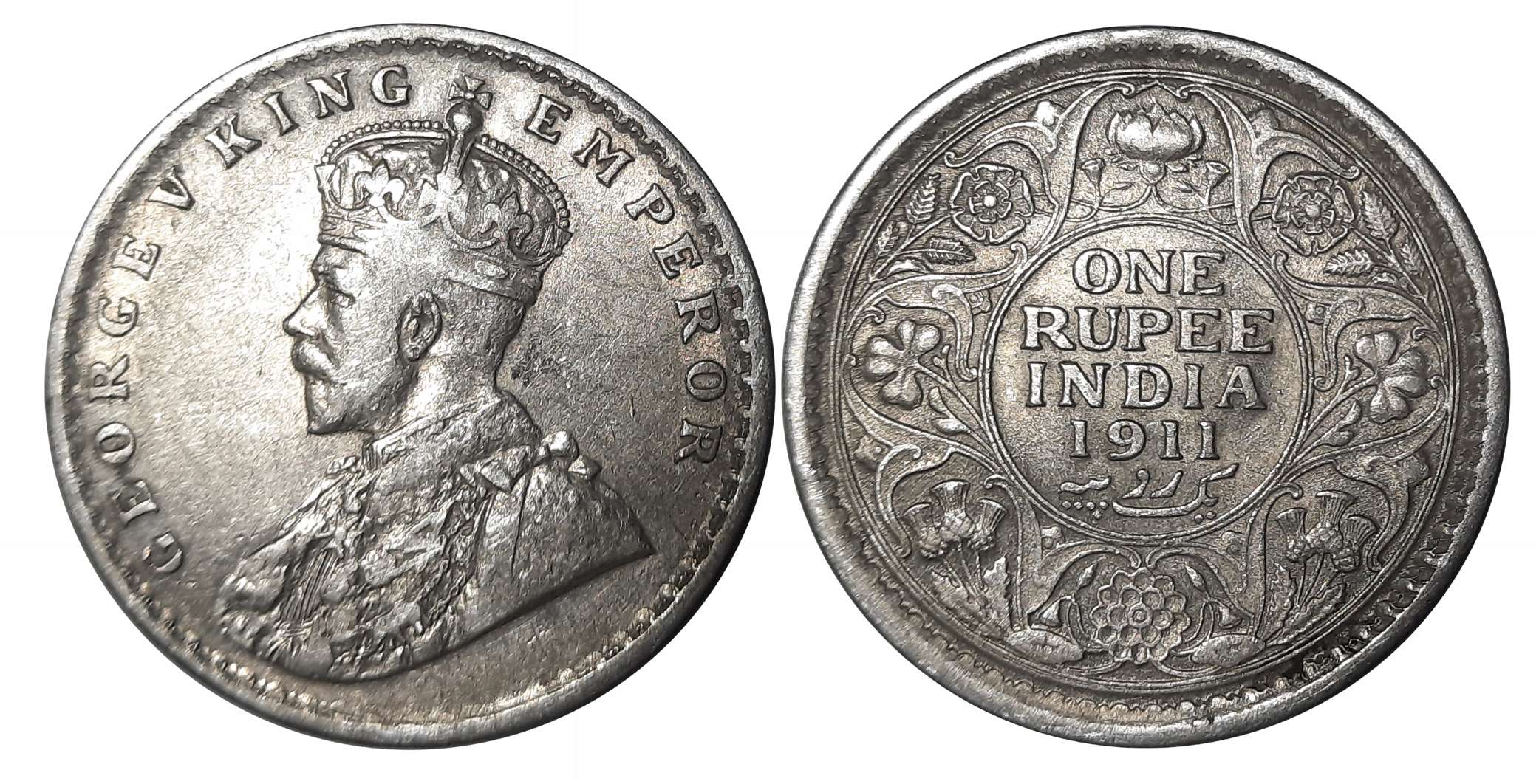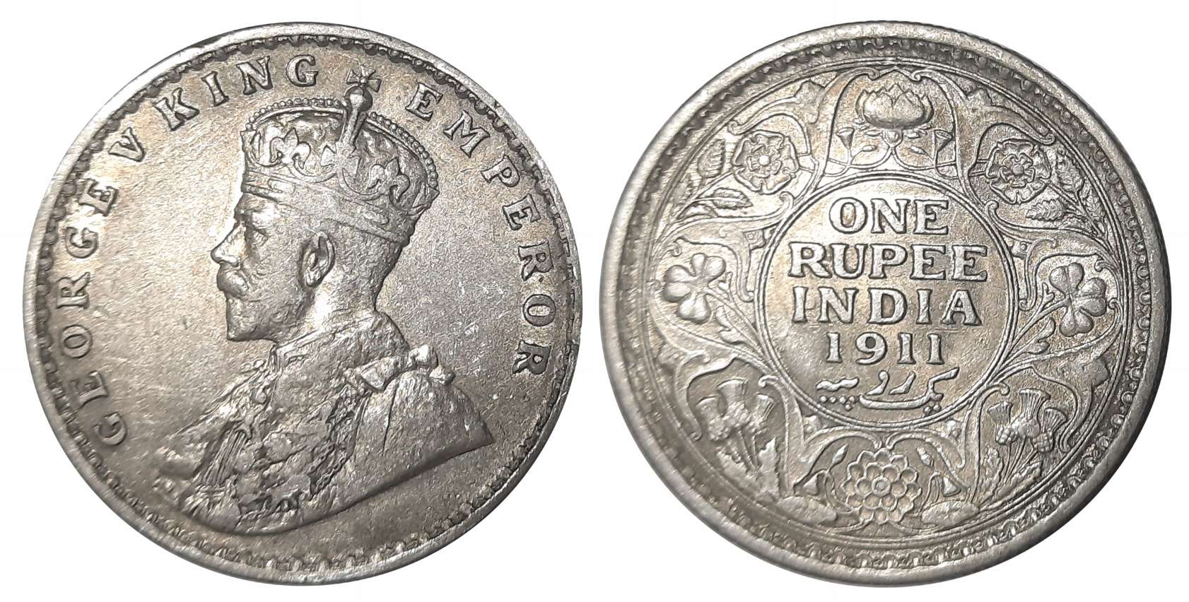 George V, Silver Rupee, 1911, Obv: King George V facing to left, Rev: Denomination & Date within circle, wreath surrounds, Very fine. Certified, Authenticated and packed in Temper Proof Coin Card.